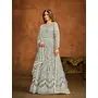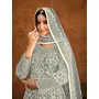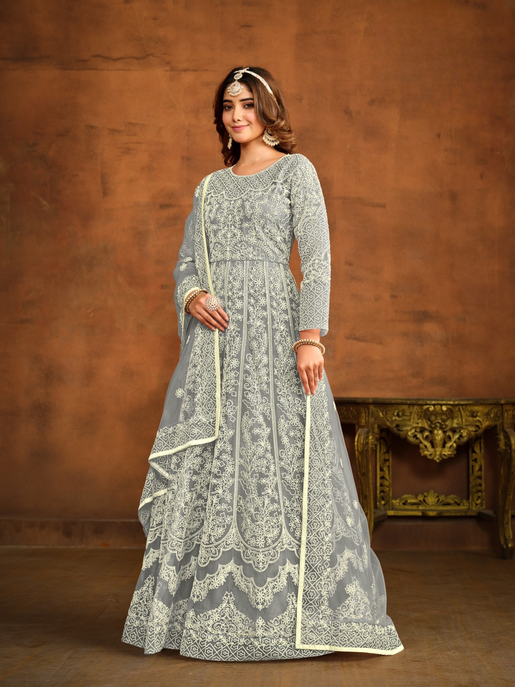 Grey Embroidered Net Semi Stitched Anarkali Suit
