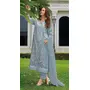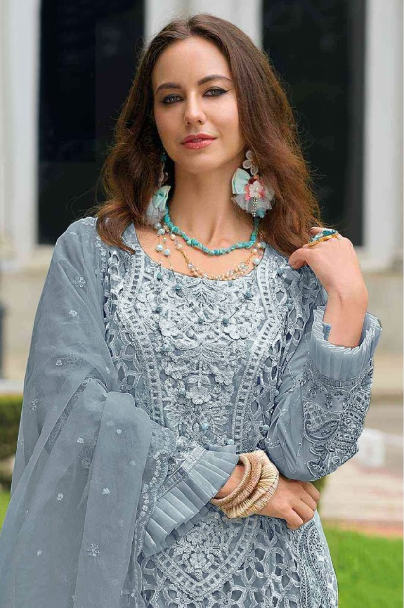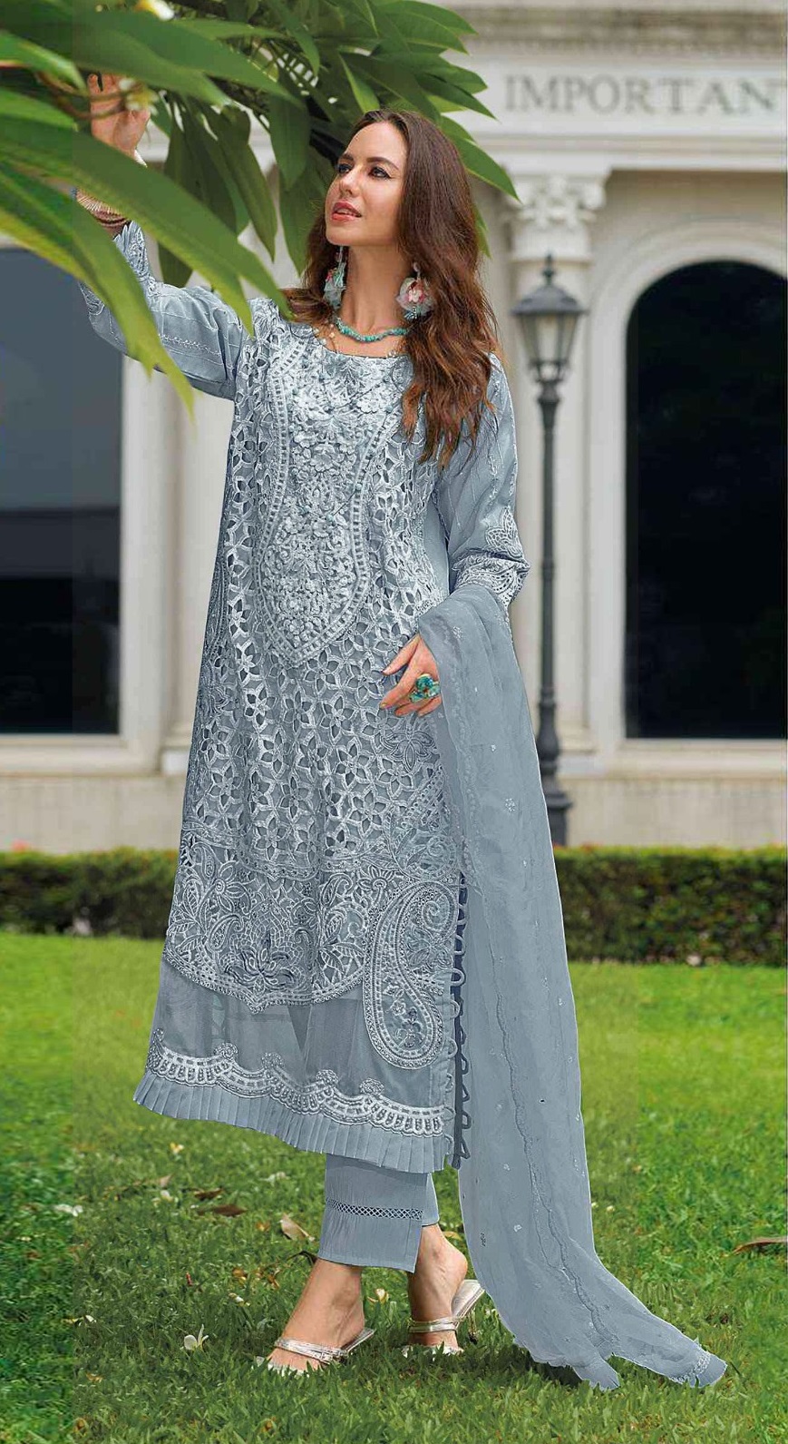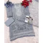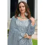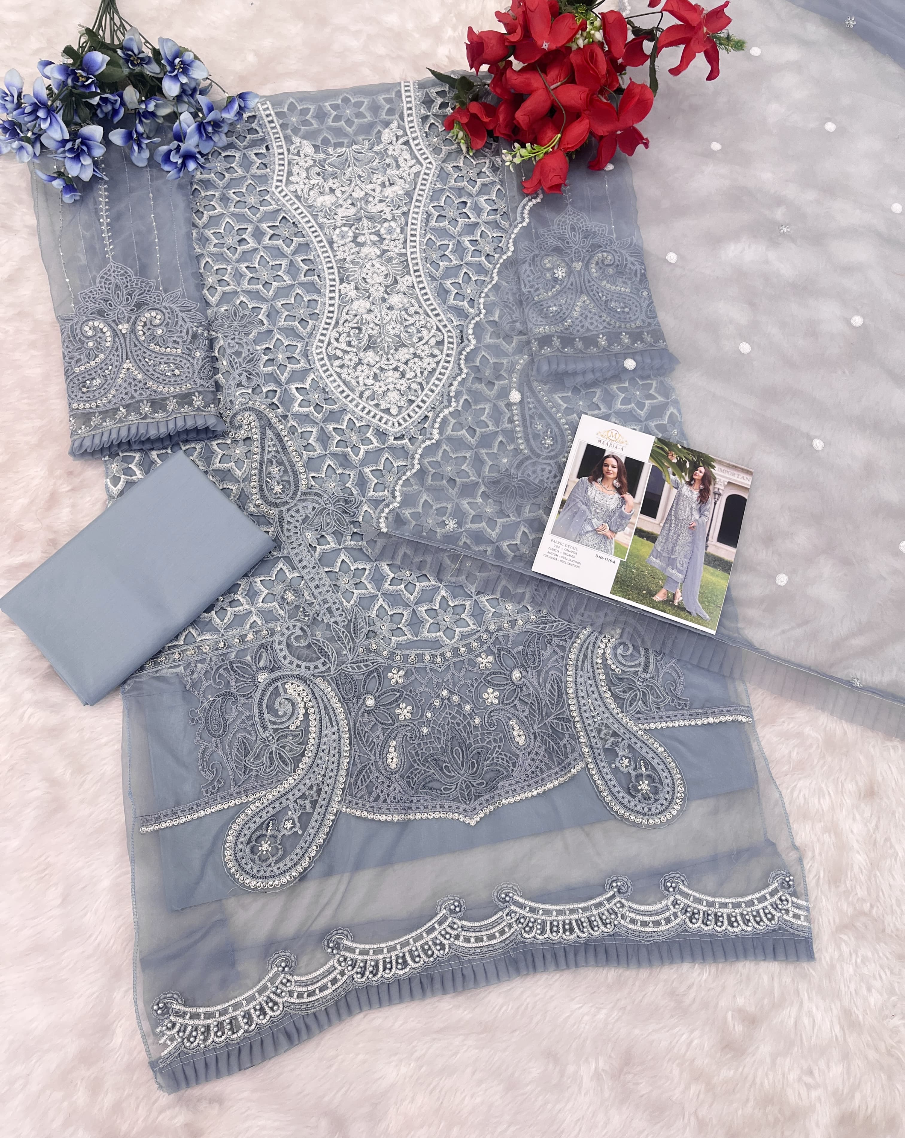 Grey embroidered sequence cut work heavy organza unstitched suit with moti & Frill