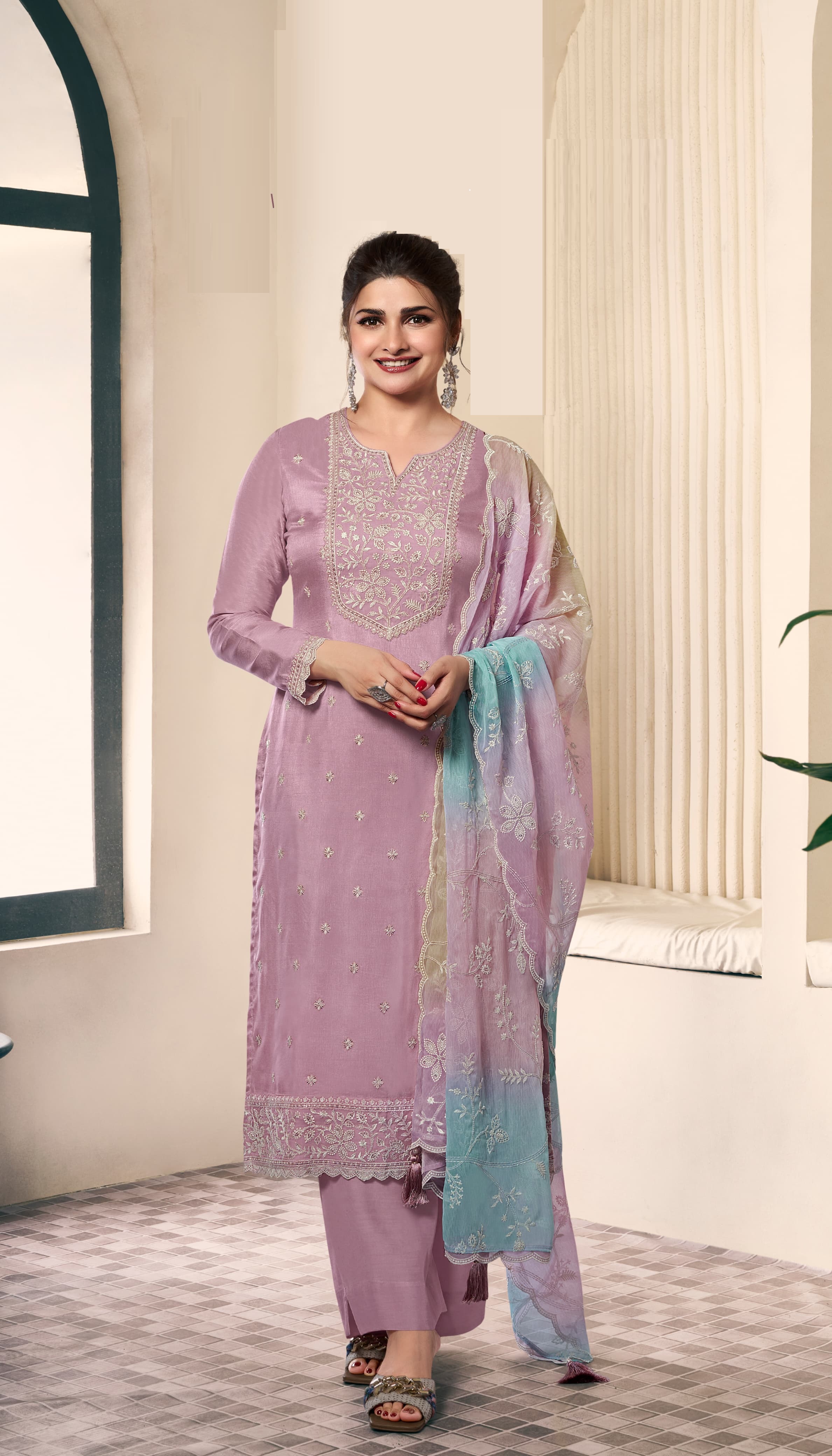 Lavendar Embroderied Silk Semi-Stitched Salwar suit