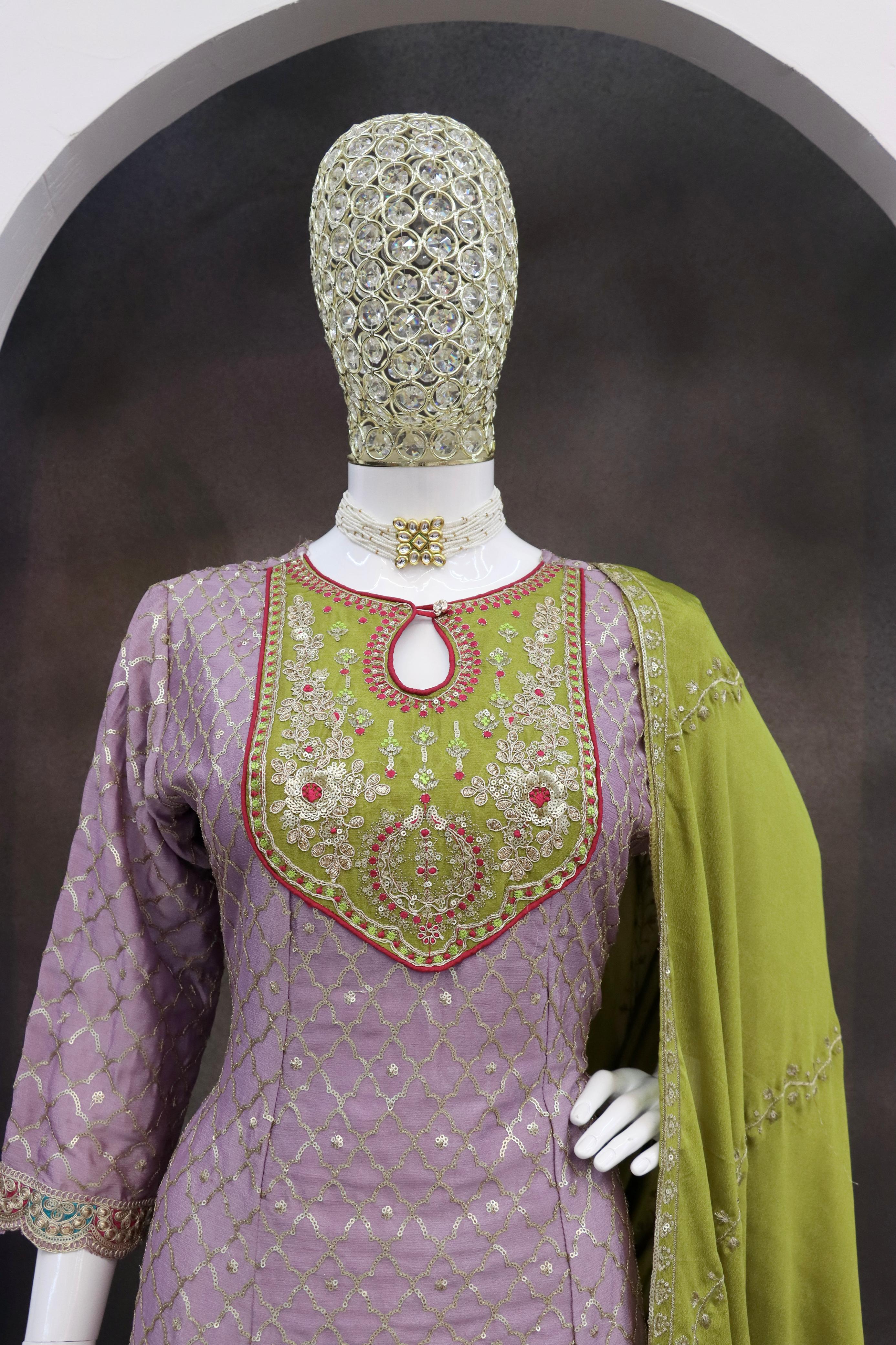 Lavender Embroderied Silk Stitched Dhoti Suit