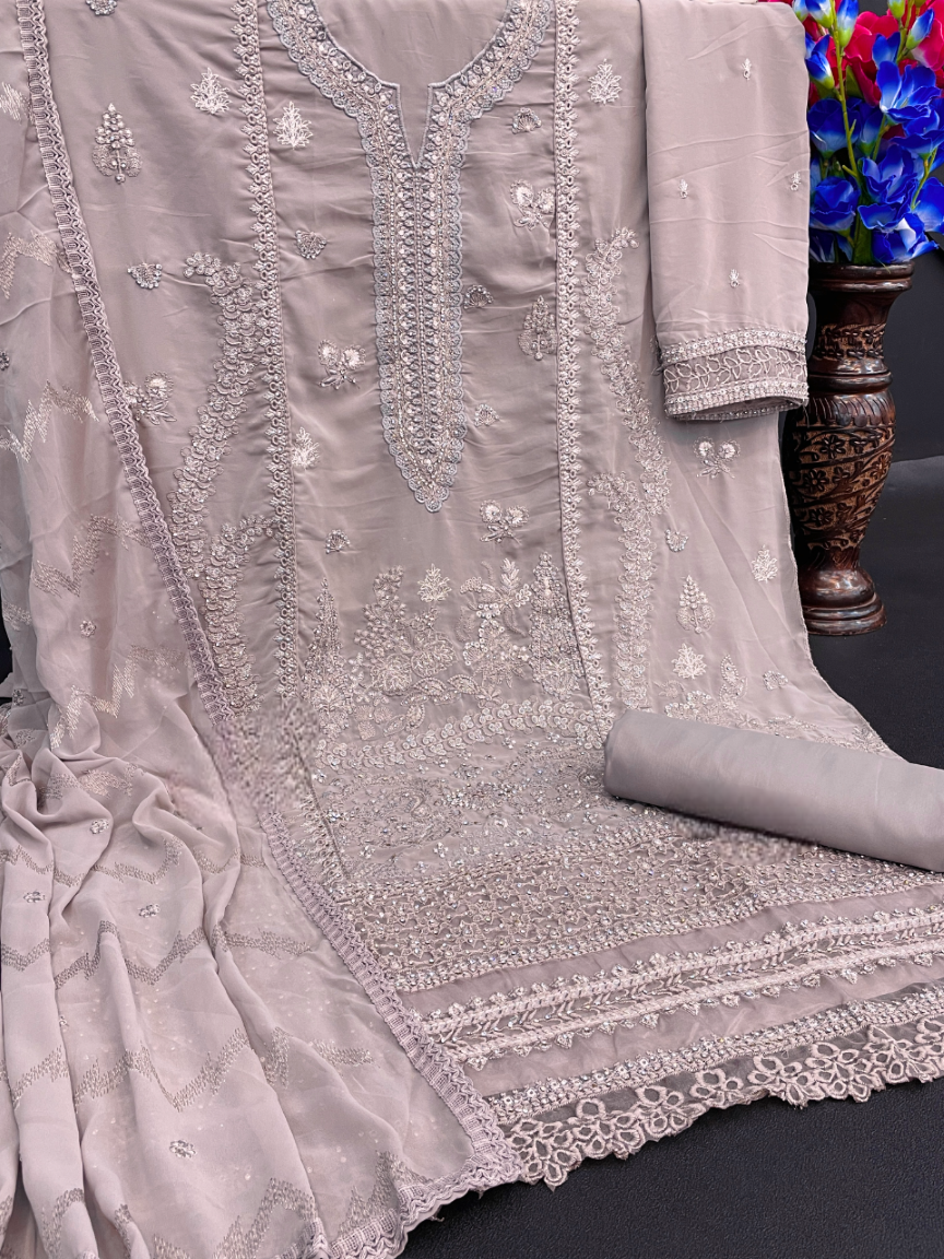 Lavender Embroidered Faux Georgette Semi Stitched Salwar Suit