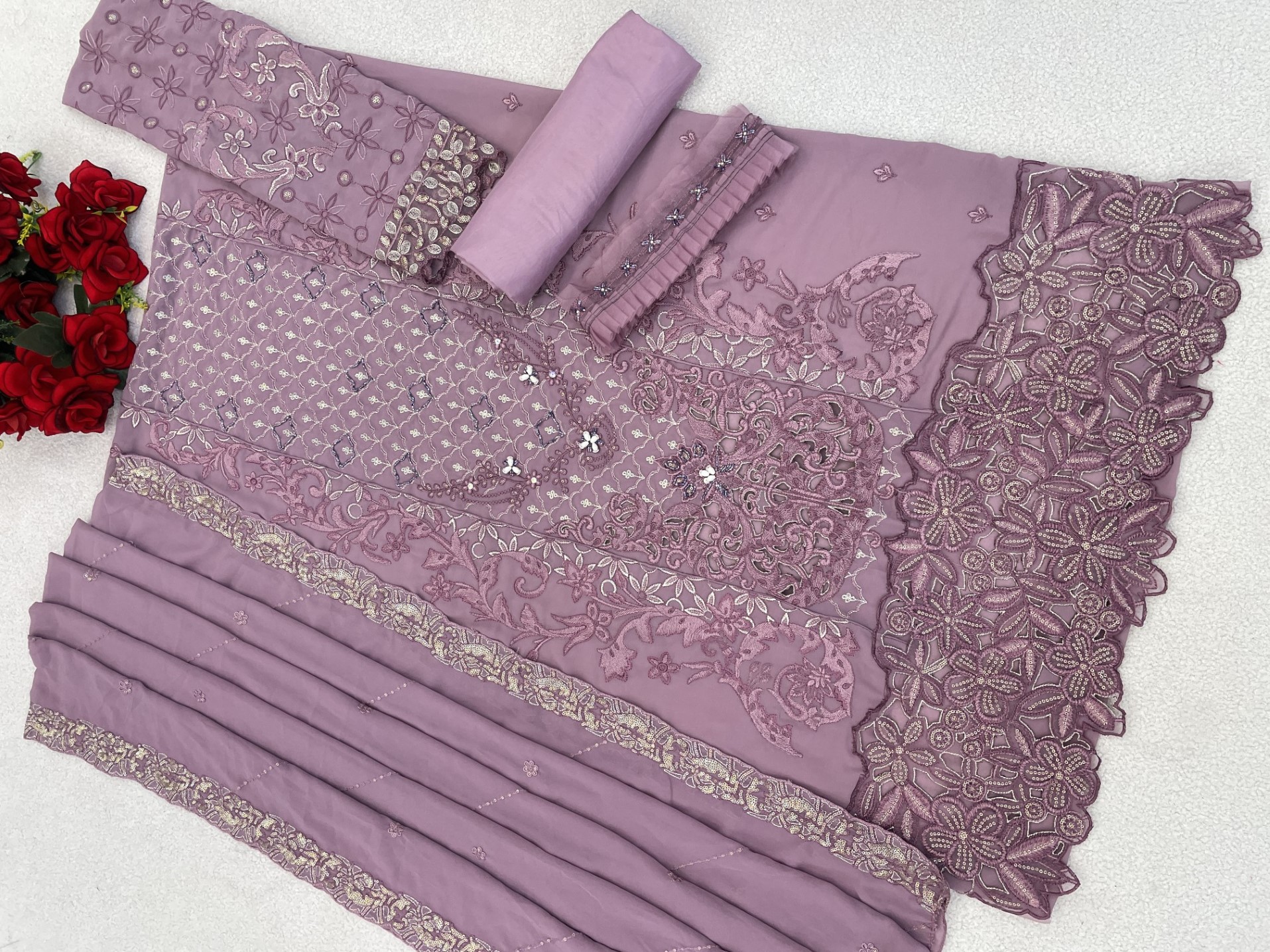 Lavender Fox Georgette Semi Stitched Suit with Embroidery Sequence Work