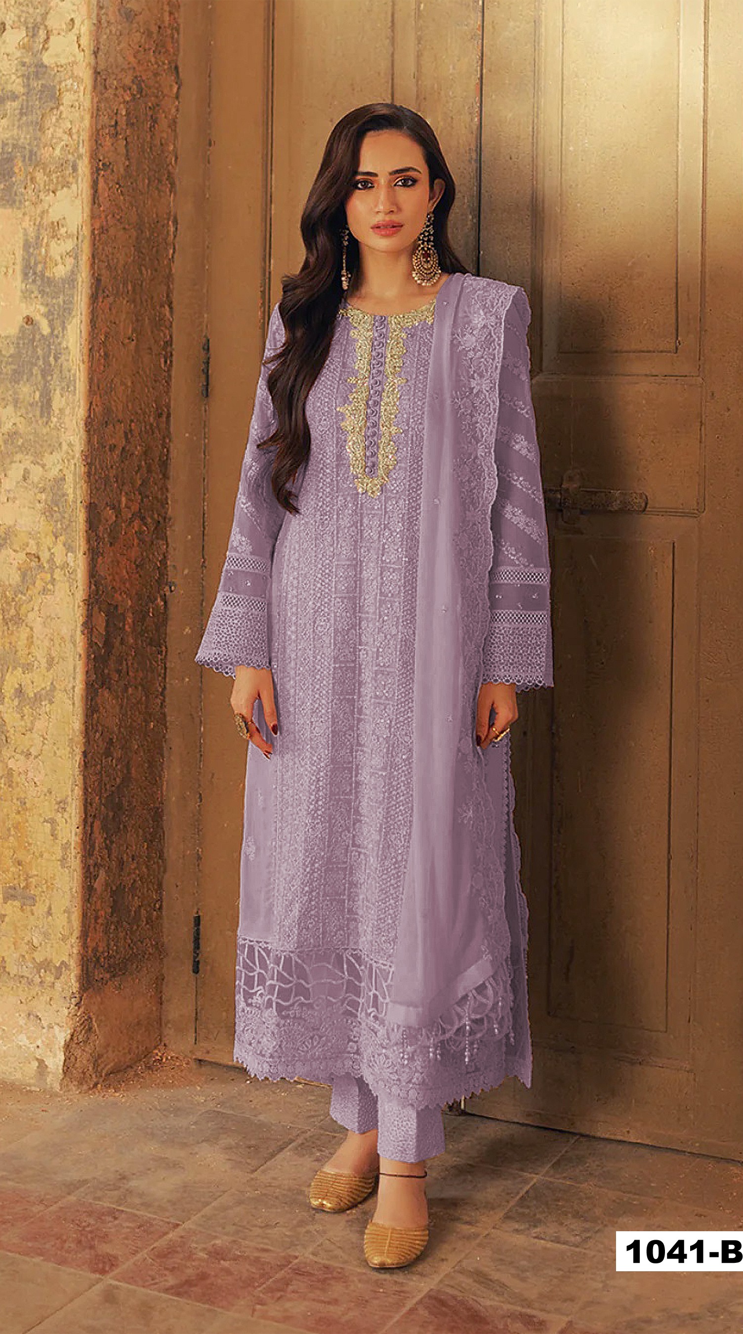 Lavender Georgette Semi Stitched Suit with Sequence & Multi Thread Work