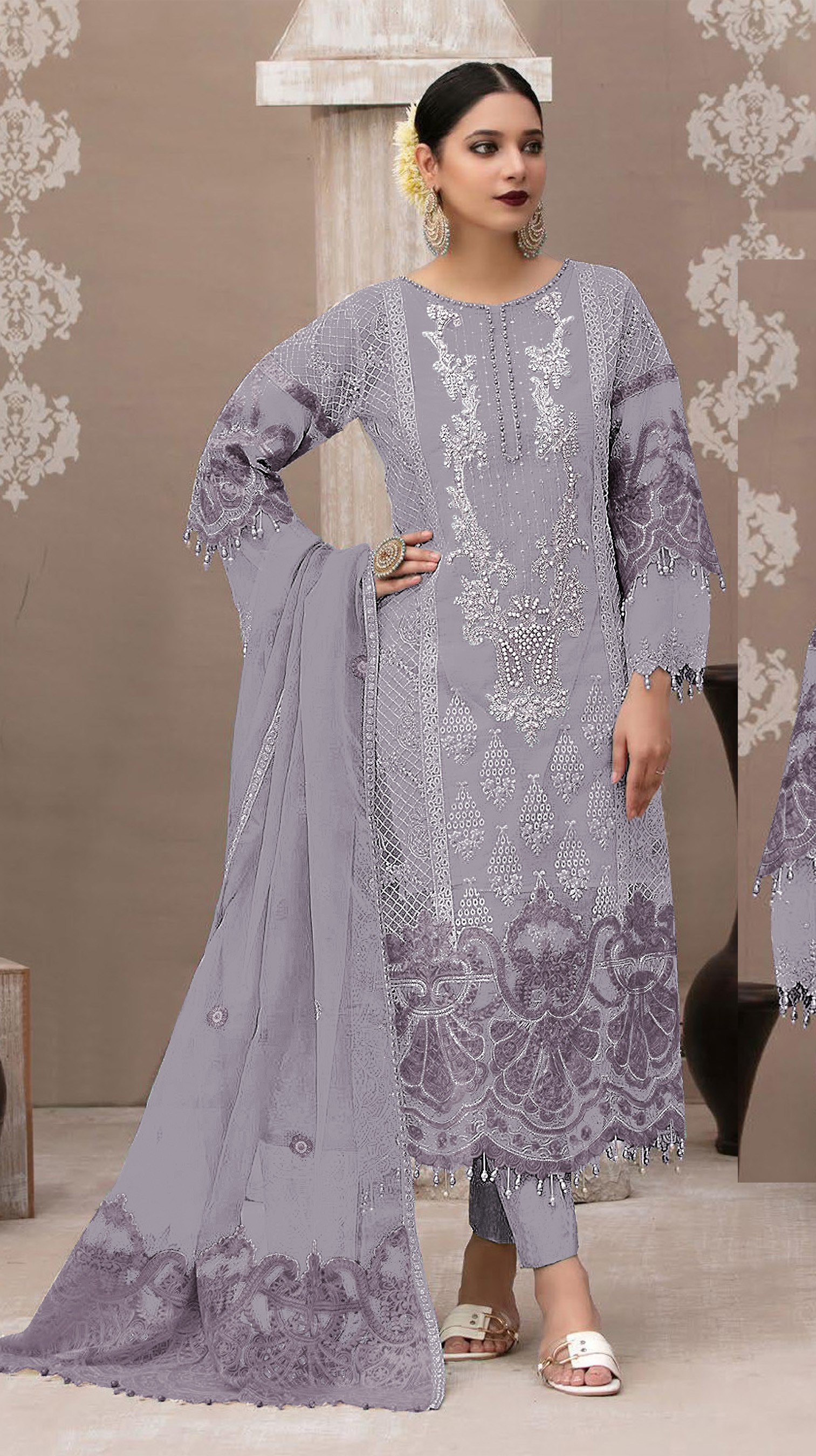 Lavender Organza Semi Stitched Suit with Embroidery & Sequence Work