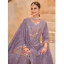 Lavender Vichitra Silk Readymade Plazzo Suit with Embroidery & Lace Work