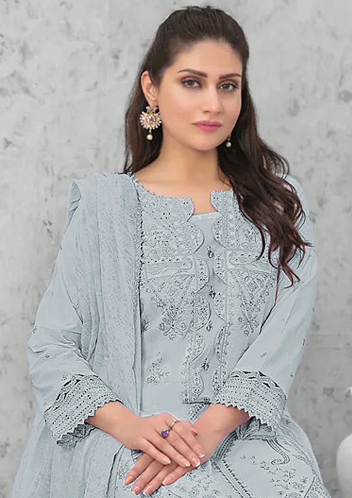 Light-aquablue Embroderied Cotton Semi-Stitched Salwar Suit