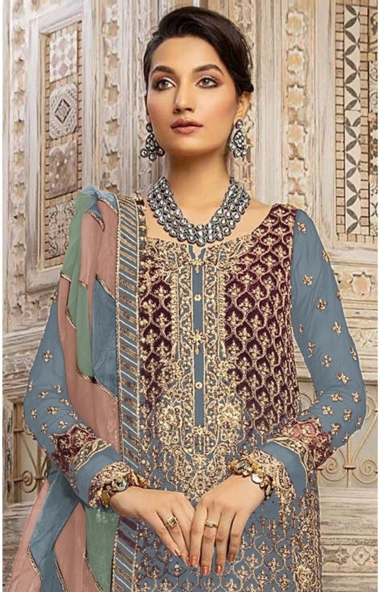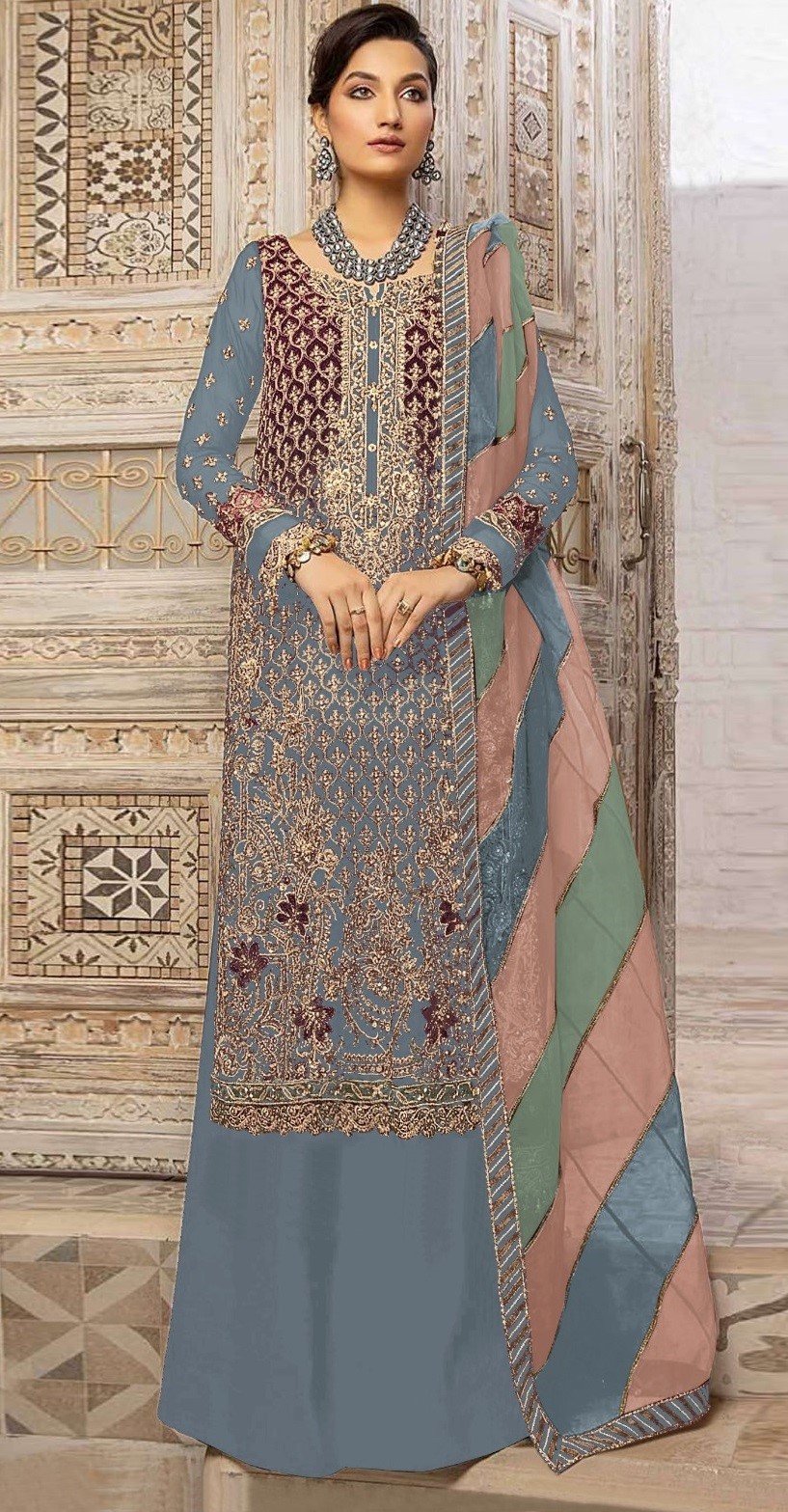 Light Blue Heavy Fox Georgette Embroidery Plazzo Suit