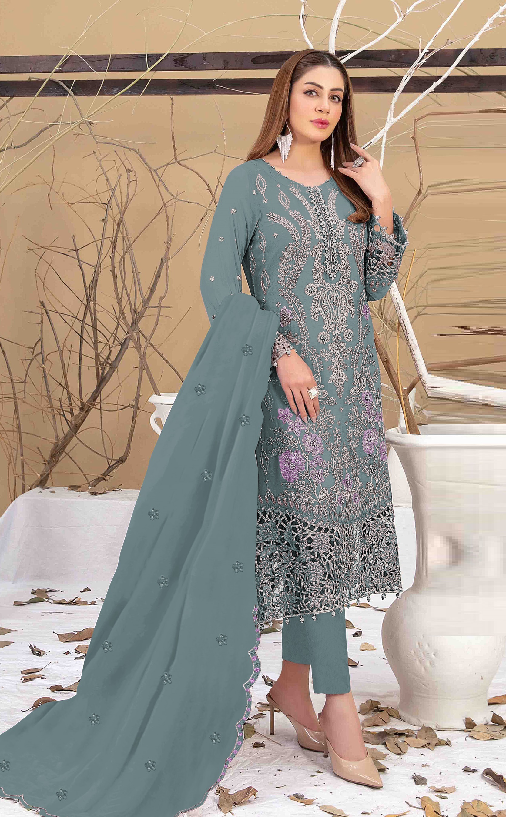 Light green Embroidered Faux Georgette Semi Stitched Salwar Suit
