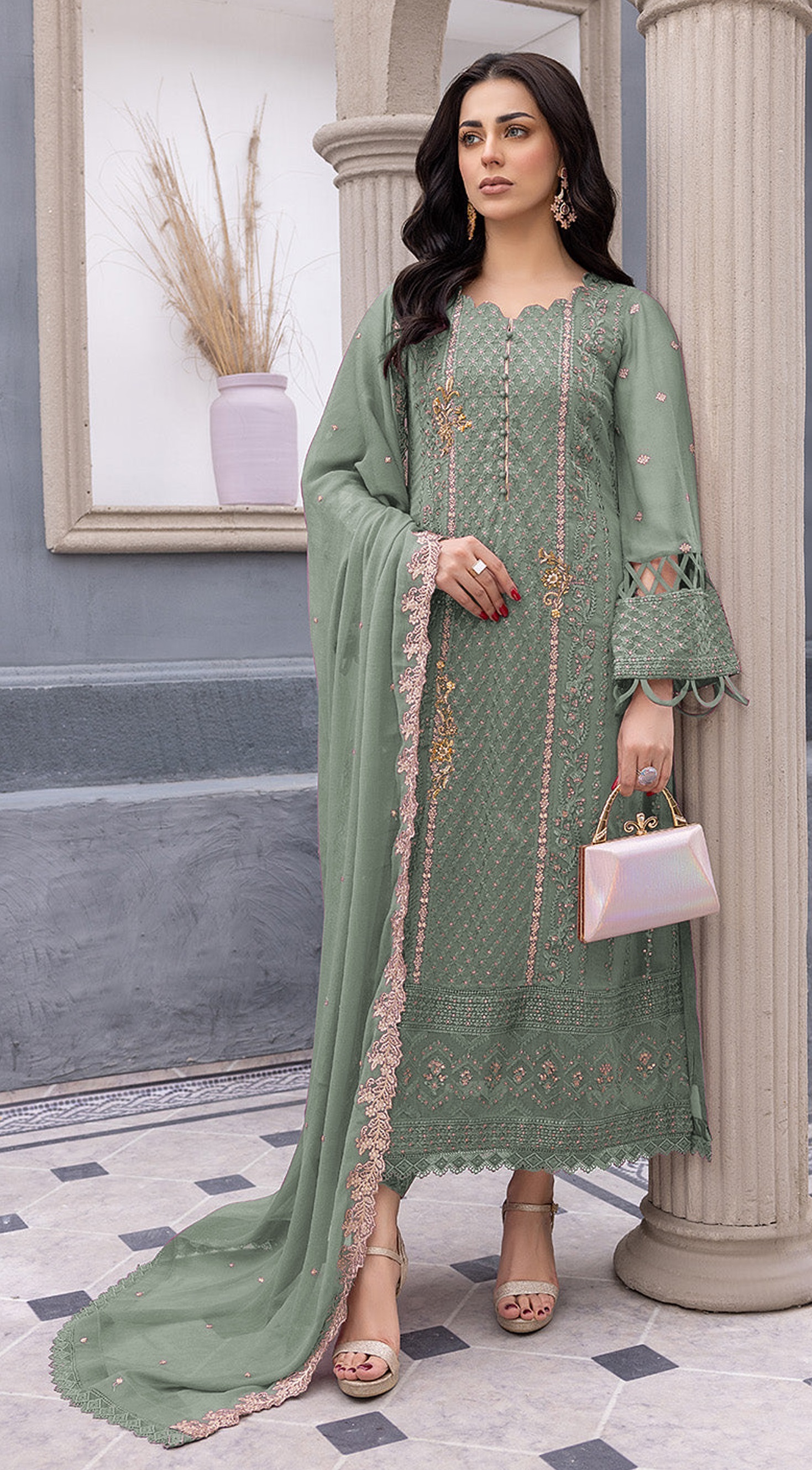 Light Green Embroidered Faux Georgette Semi Stitched Salwar Suit