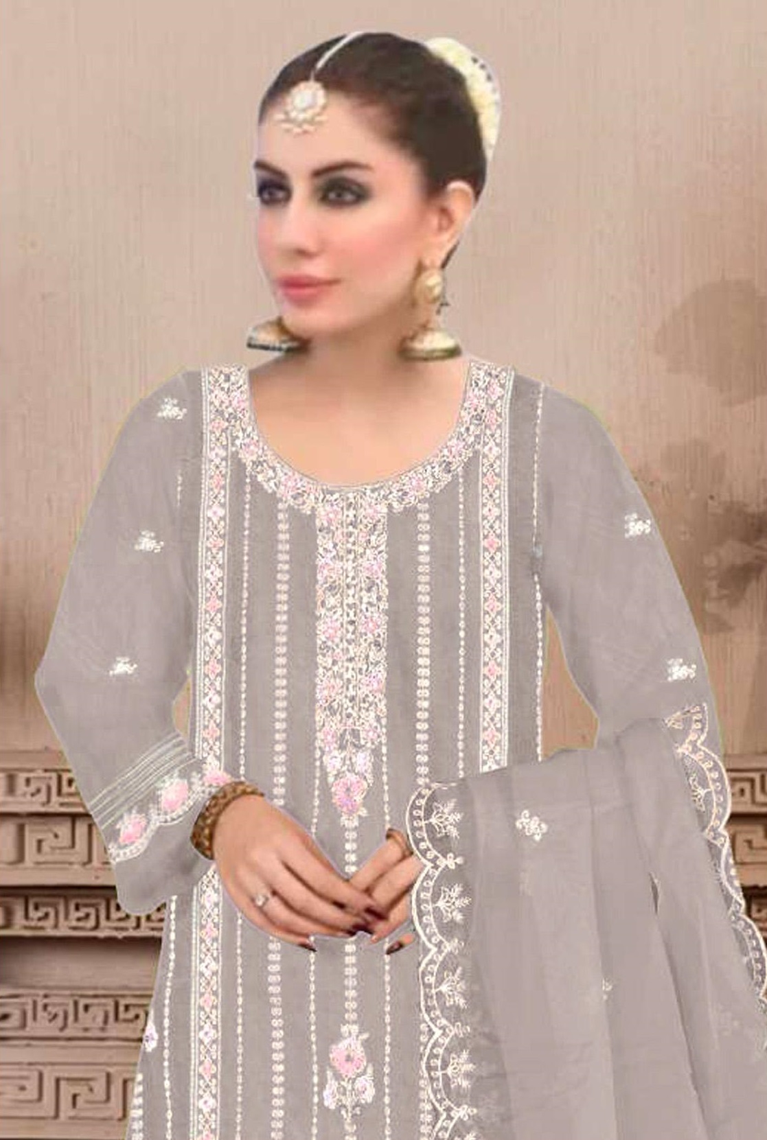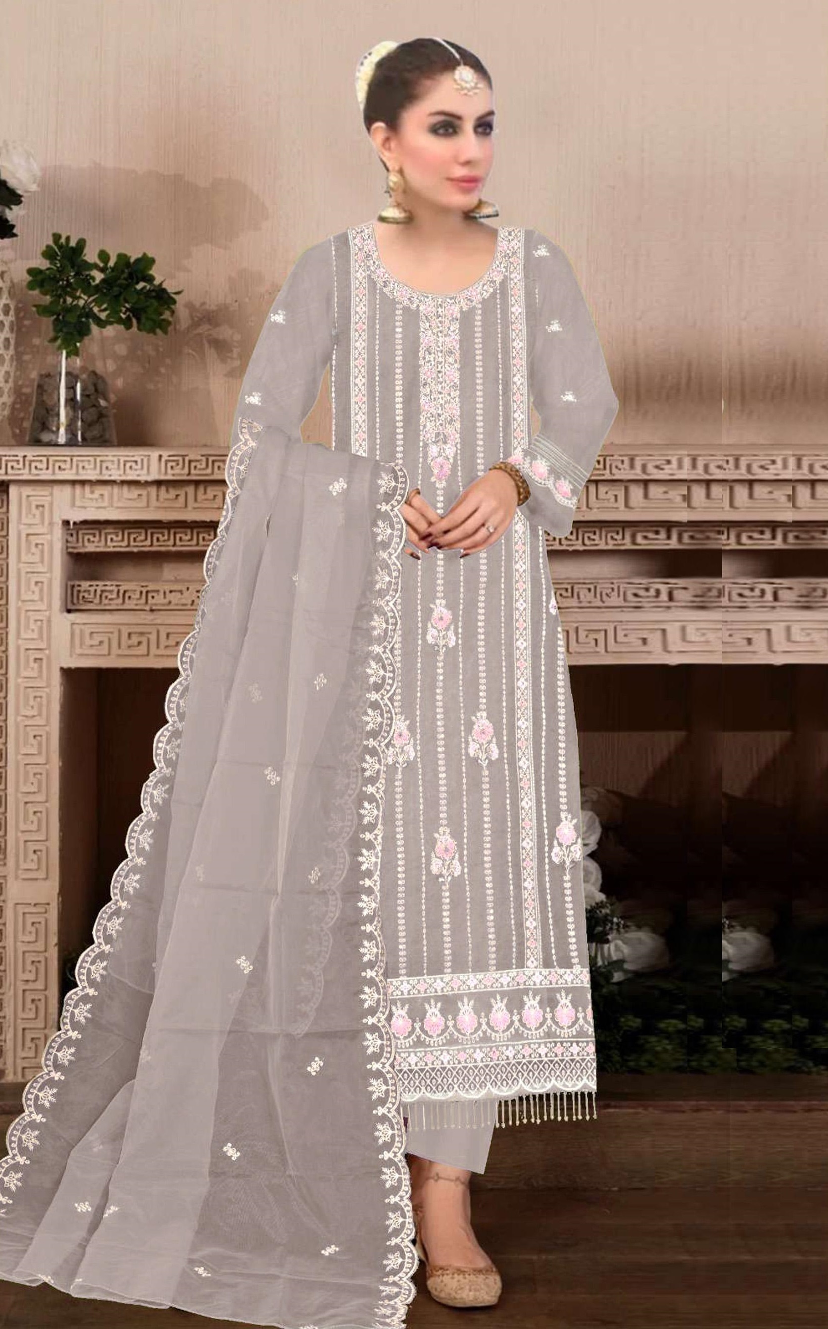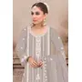 Light Grey Embroidered Viscose Chinon Semi Stitched Salwar Suit