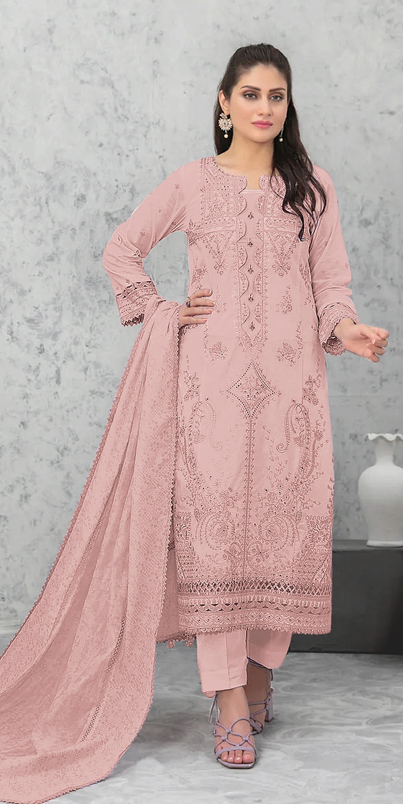 Light-pink Embroderied Cotton Semi-Stitched Salwar Suit