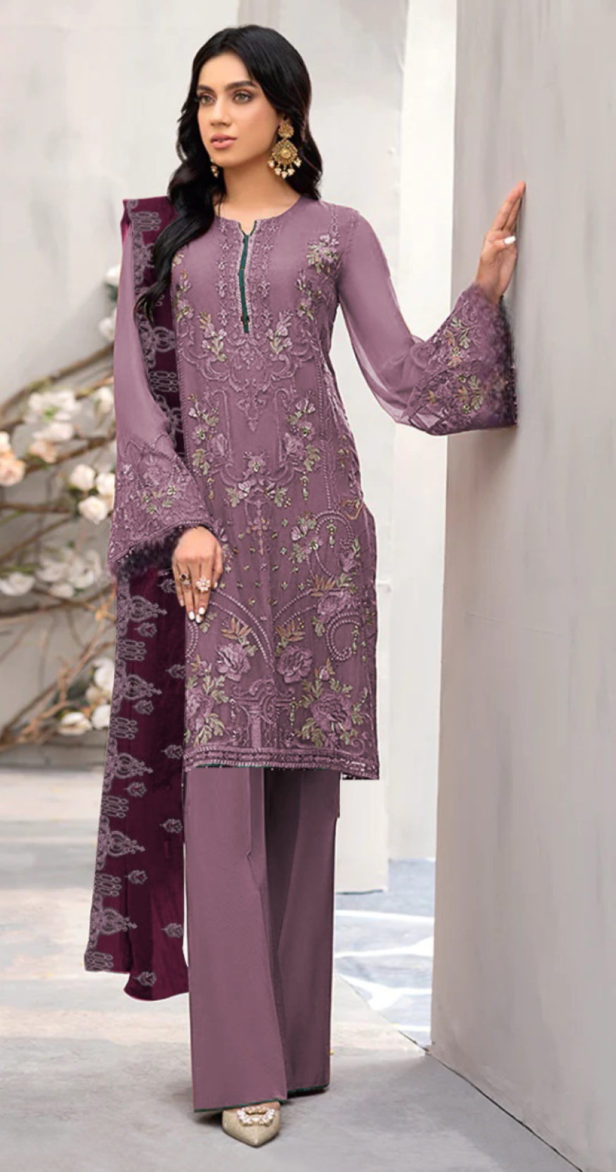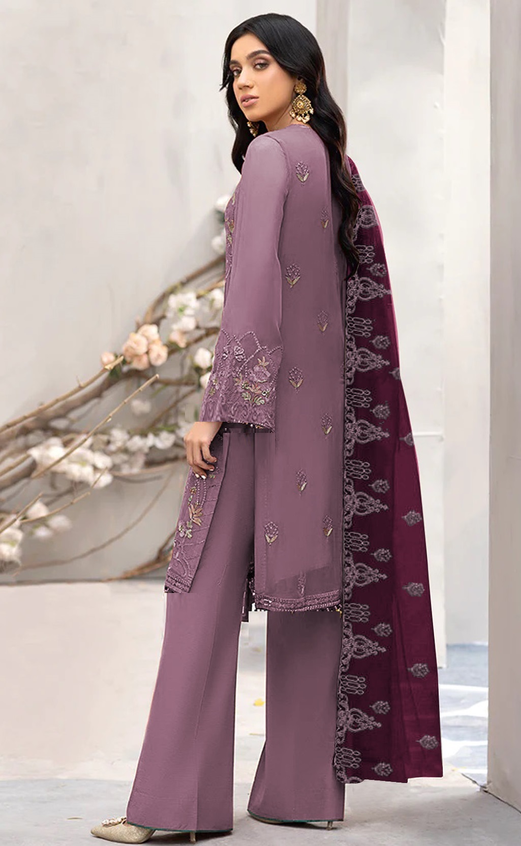 Light Purple Embroidered Faux Georgette Semi Stitched Salwar Suit