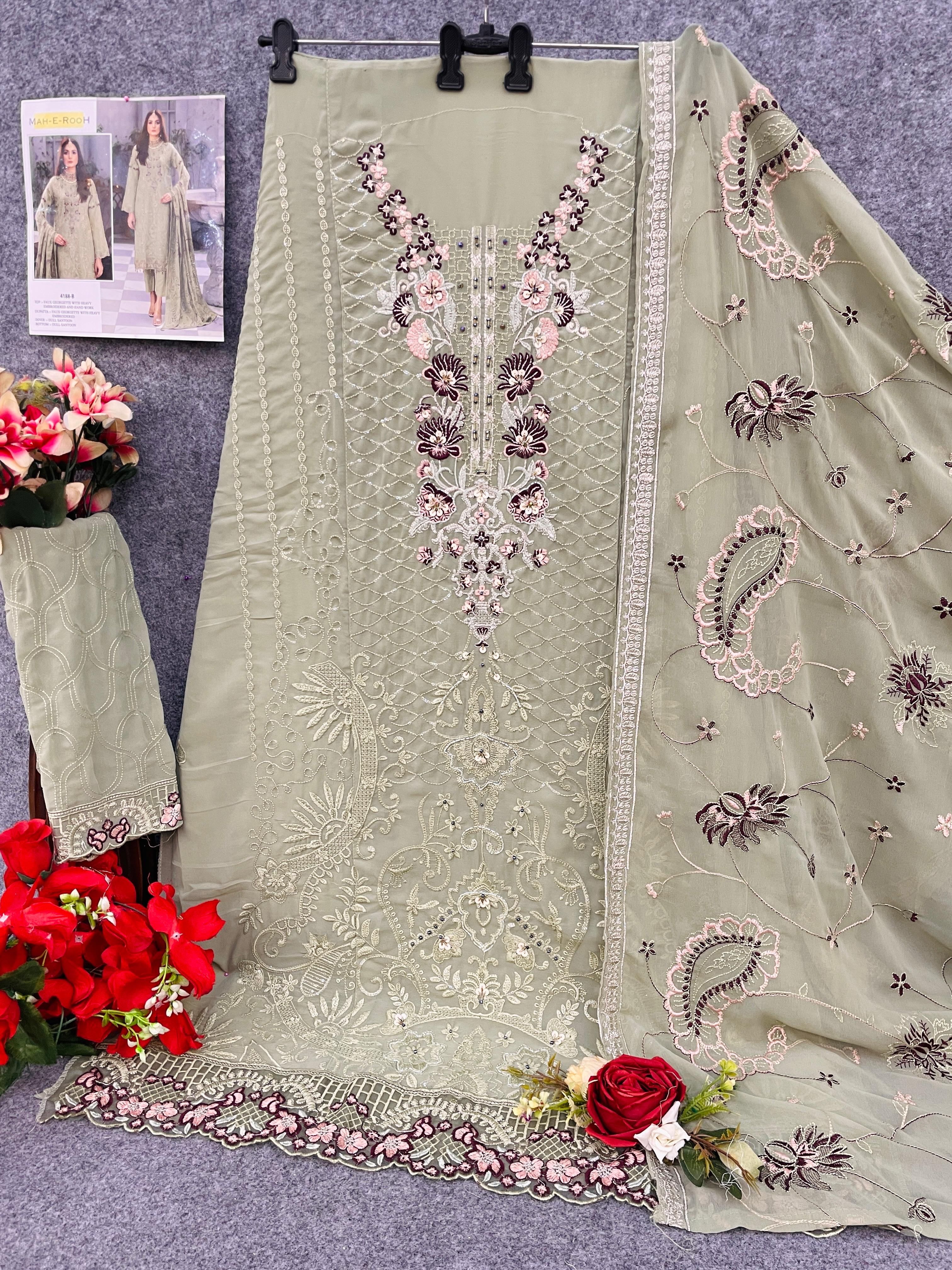 Light Sea Green Fox Georgette Embroidered Semi Stitched Salwar Suit