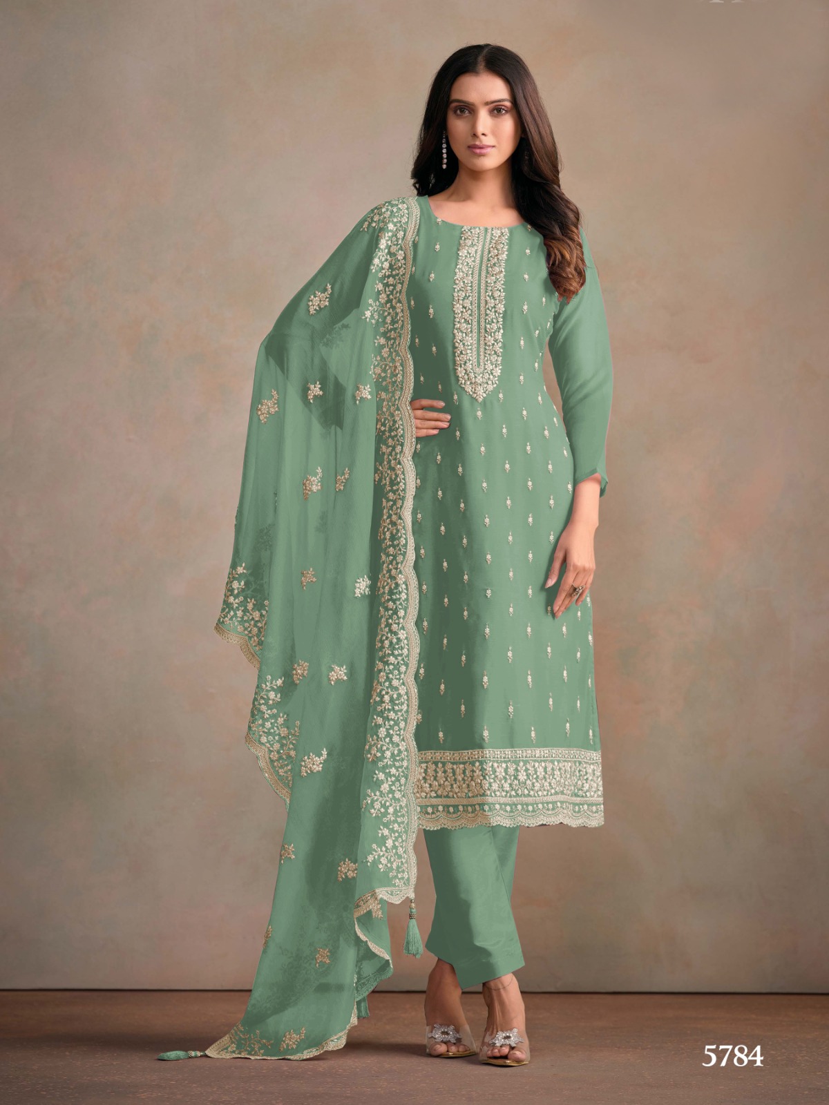 Light Teal Heavy Orgenza With Embroidery Straight Salwar Suit