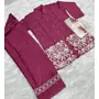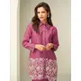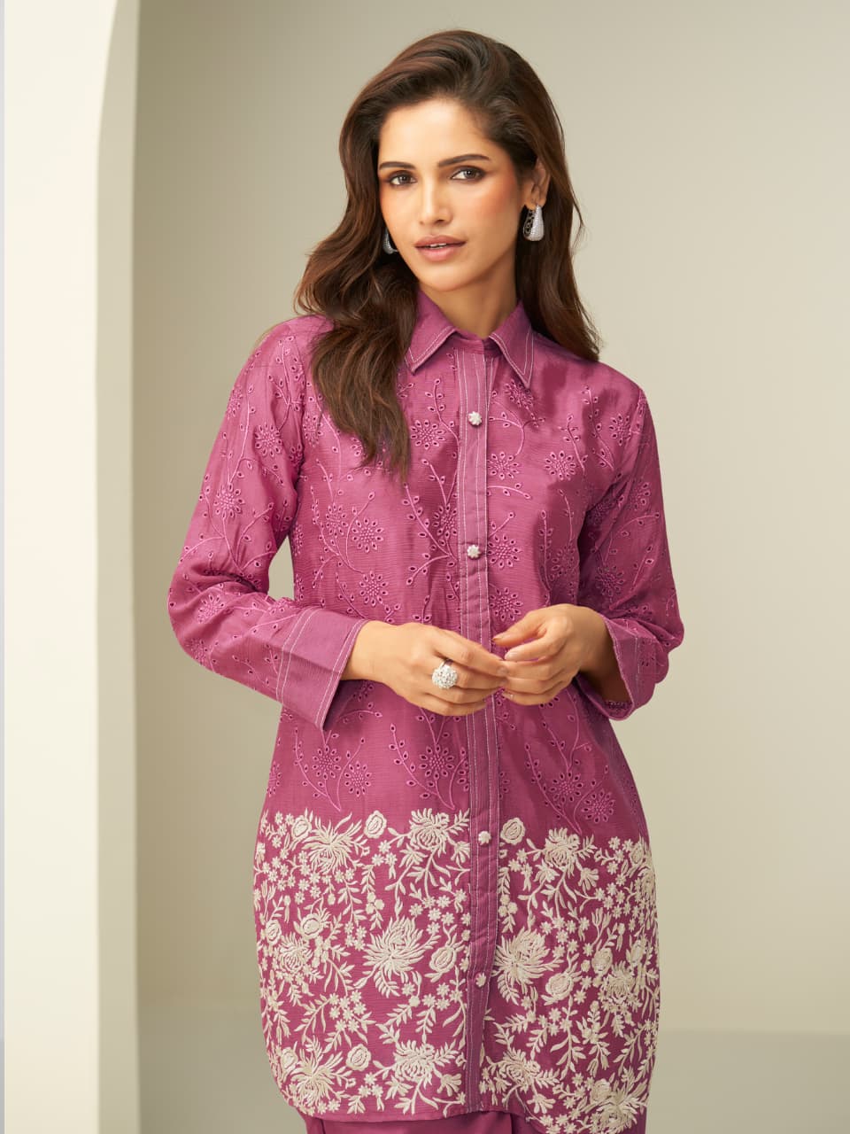 Magenta Chinon Silk Readymade Co-ords Set with Embroidery Work