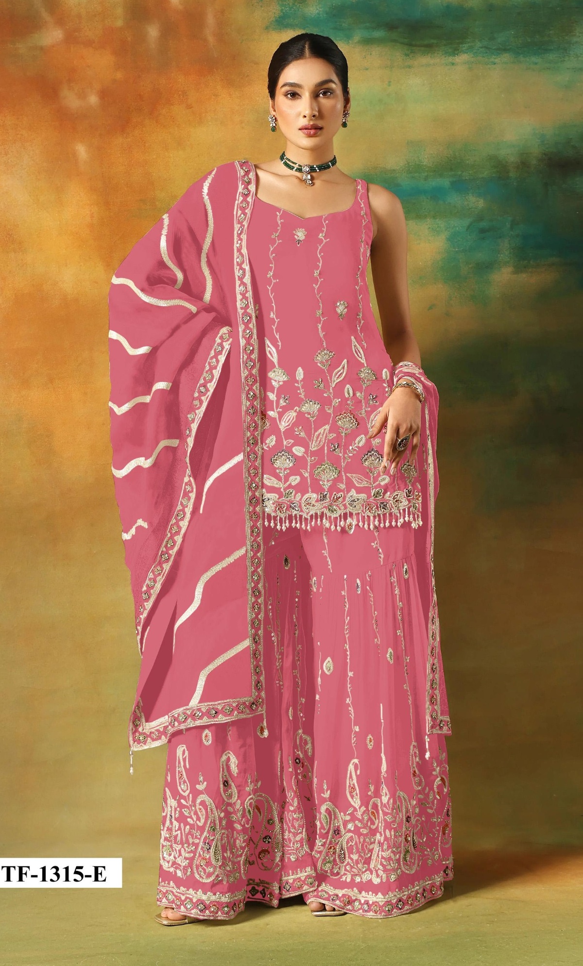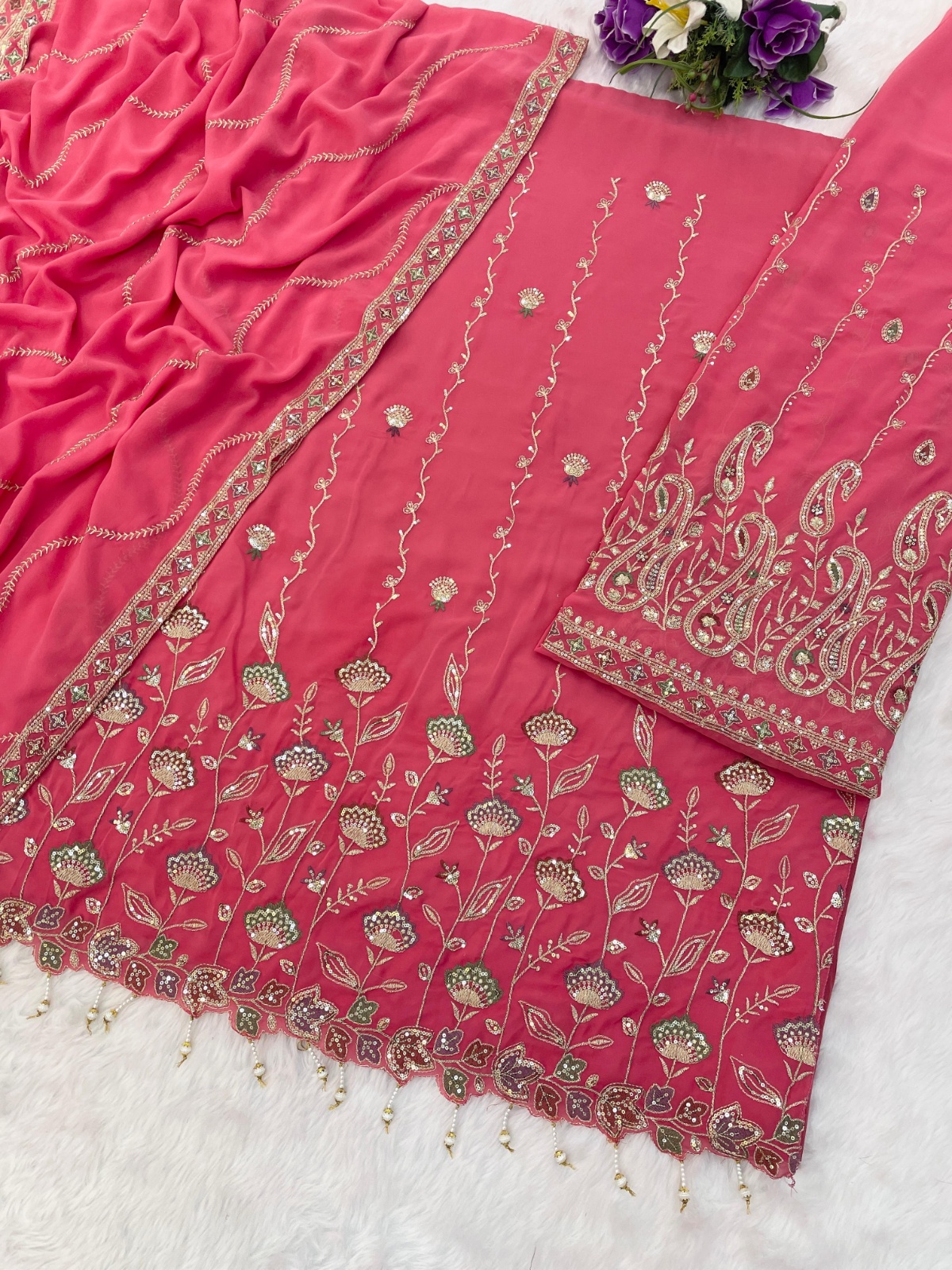 Magenta Heavy Fox Georgette Semi Stitched Suit With Embroidery Work