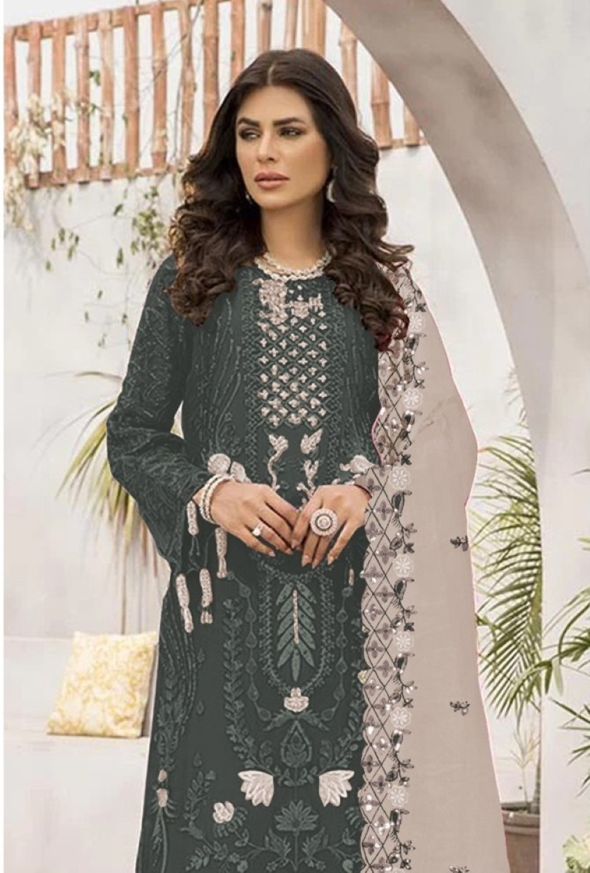 Mahendi Embroidered Faux Georgette Semi Stitched salwar Suit