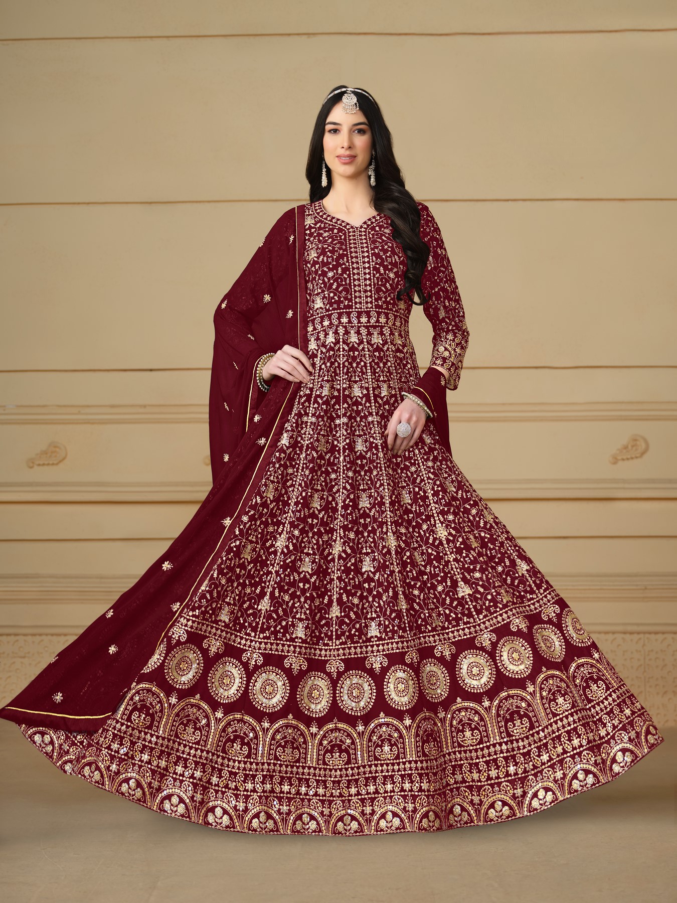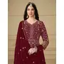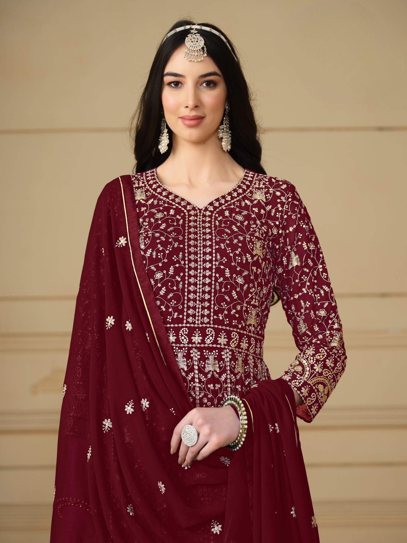 Maroon Embroidered Faux Georgette Semi Stitched Anarkali Suit