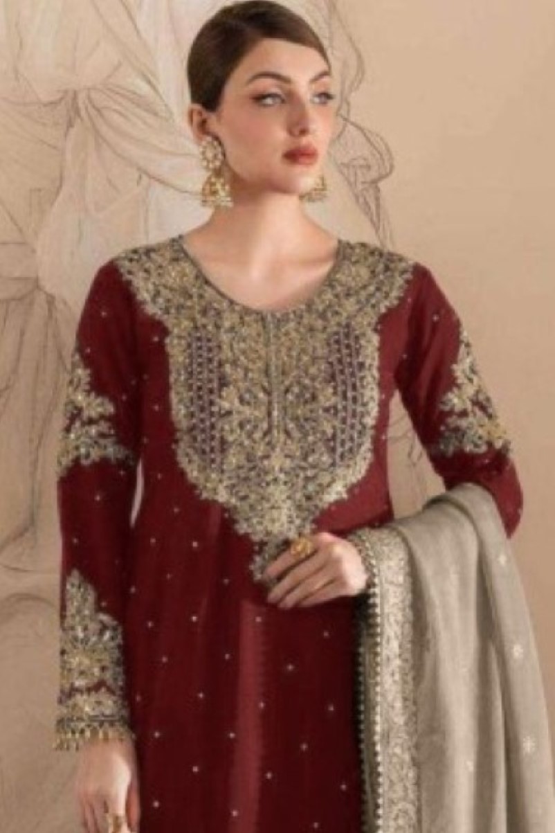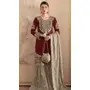 Maroon Embroidered Faux Georgette with Sequence Work Semi Stitched Sharara Suit