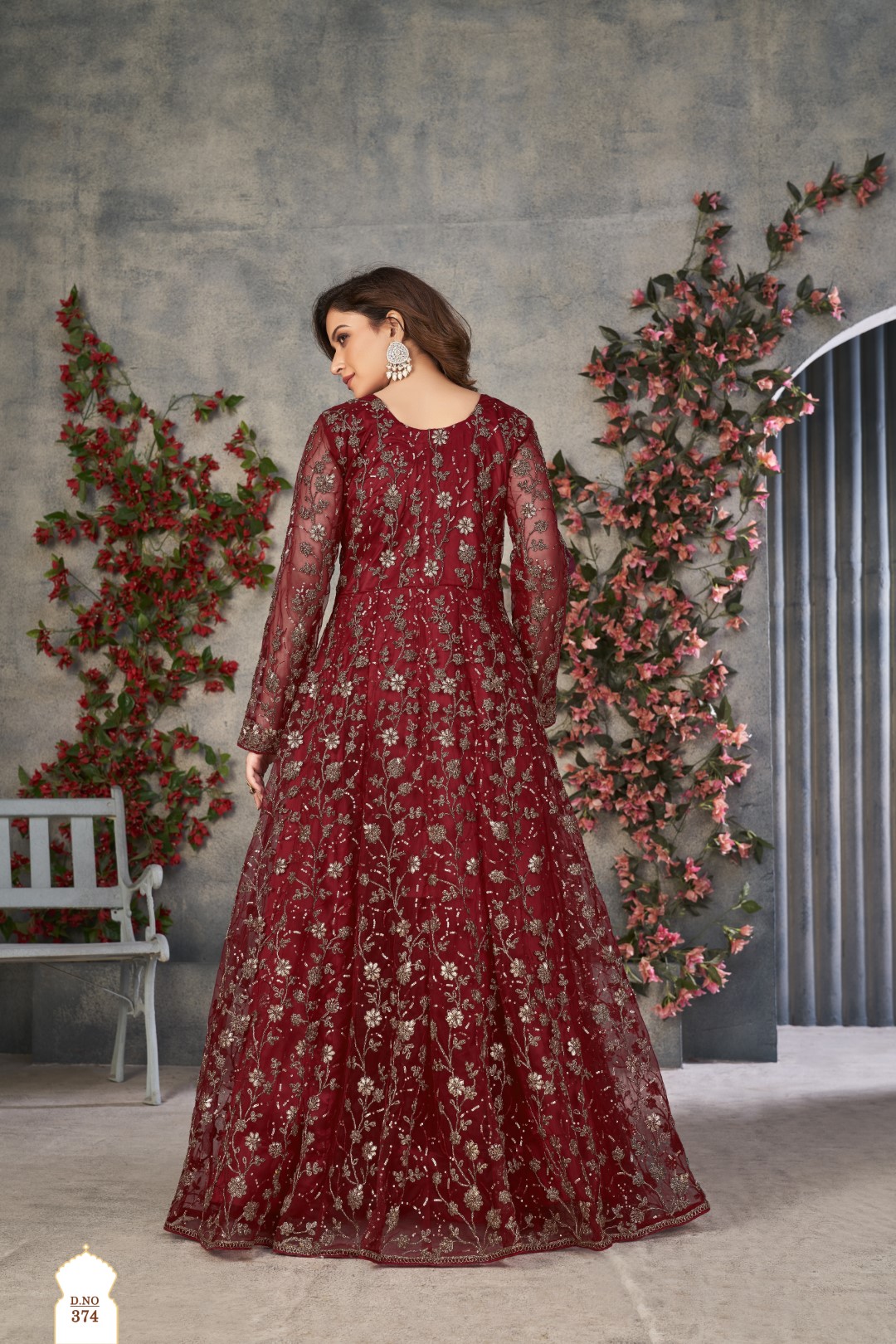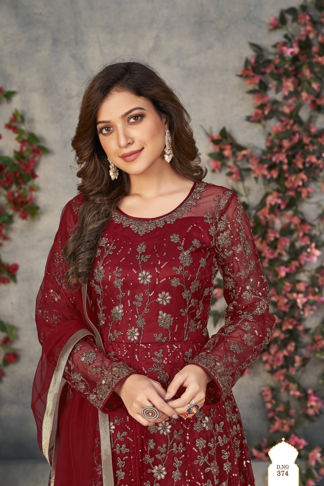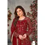 Maroon Embroidered Net Semi Stitched Anarkali suit