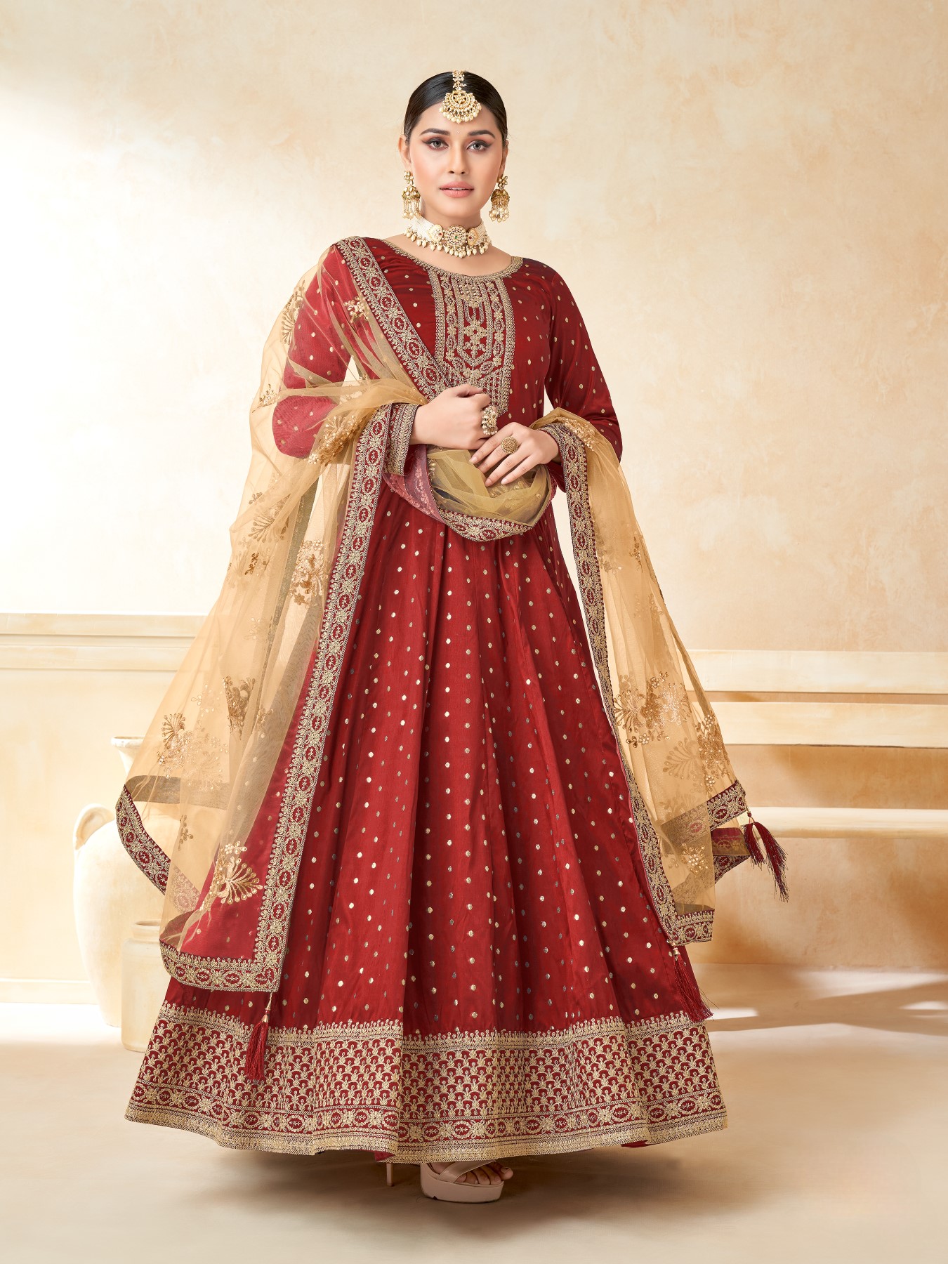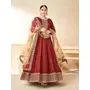 Maroon Embroidered Tapeta Silk Semi Stitched Anarkali Suit