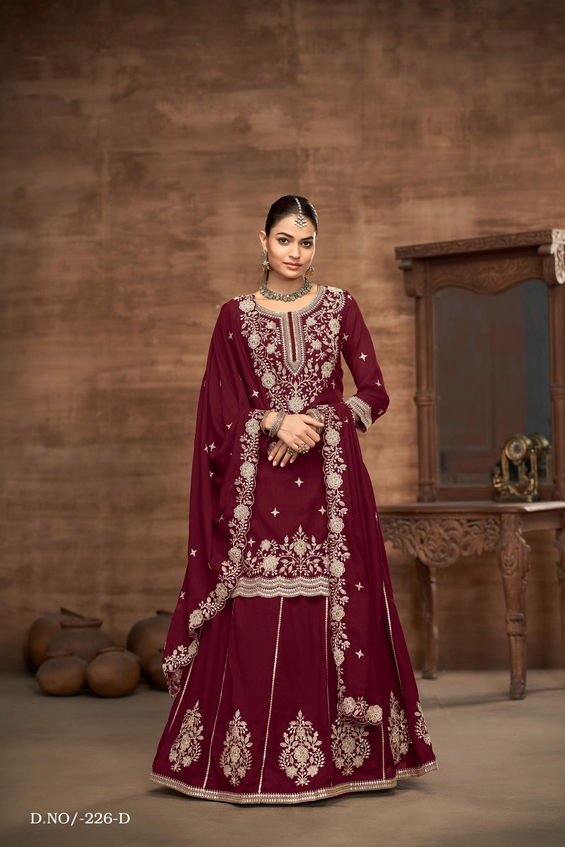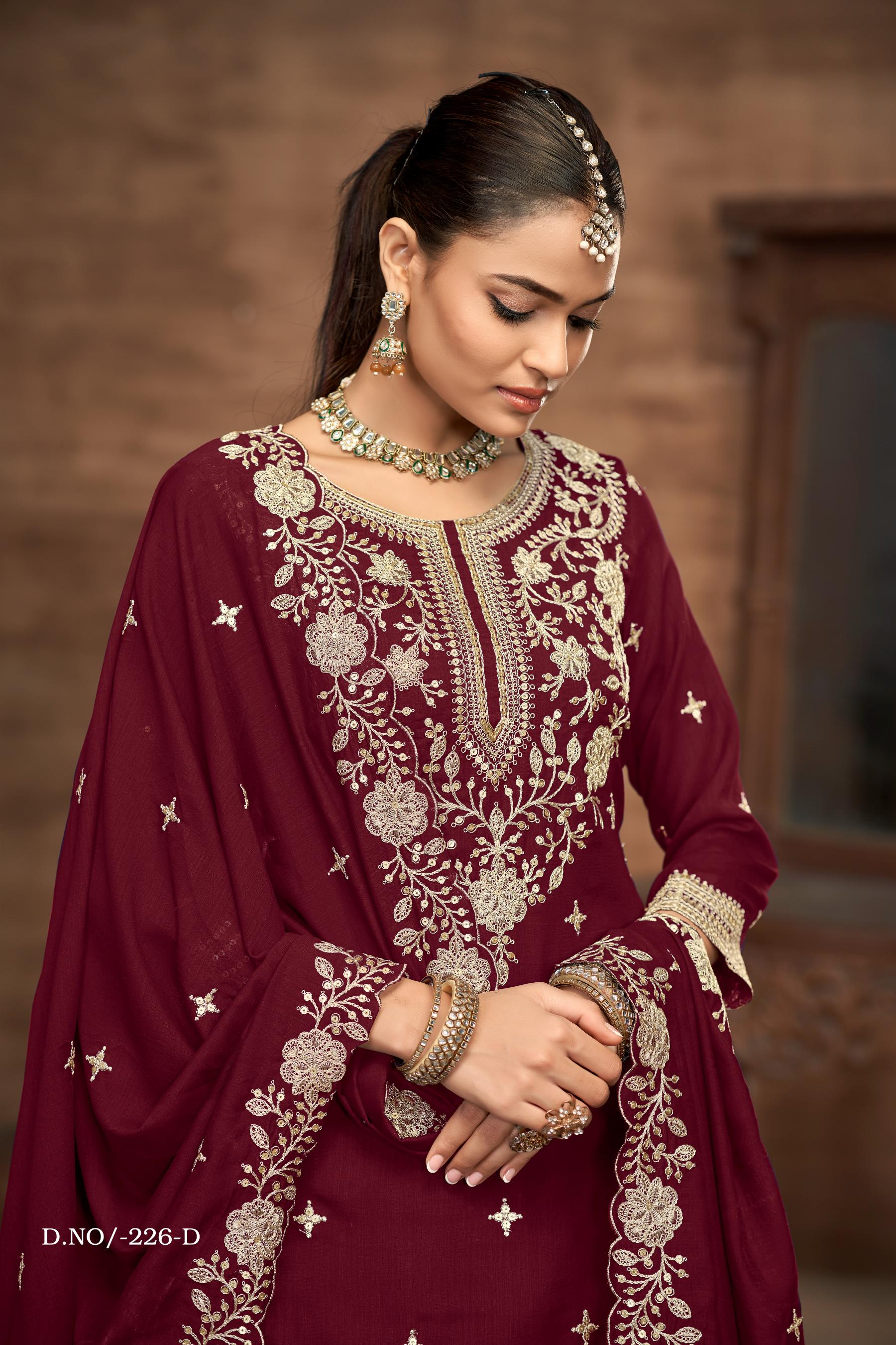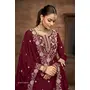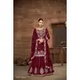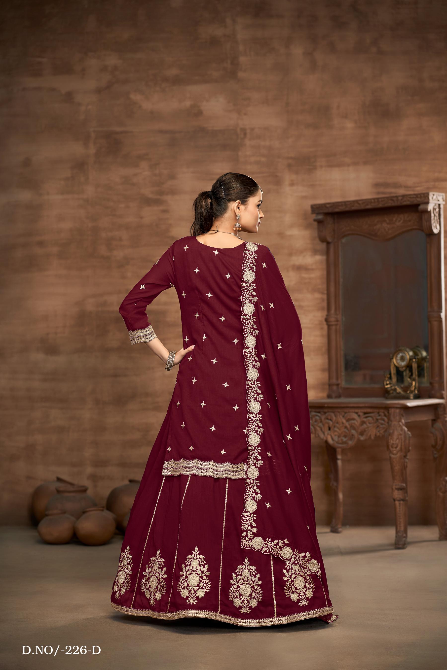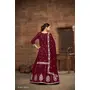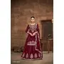 Maroon Premium Embroidered Vichitra Silk Free Size Lehenga Style Suit