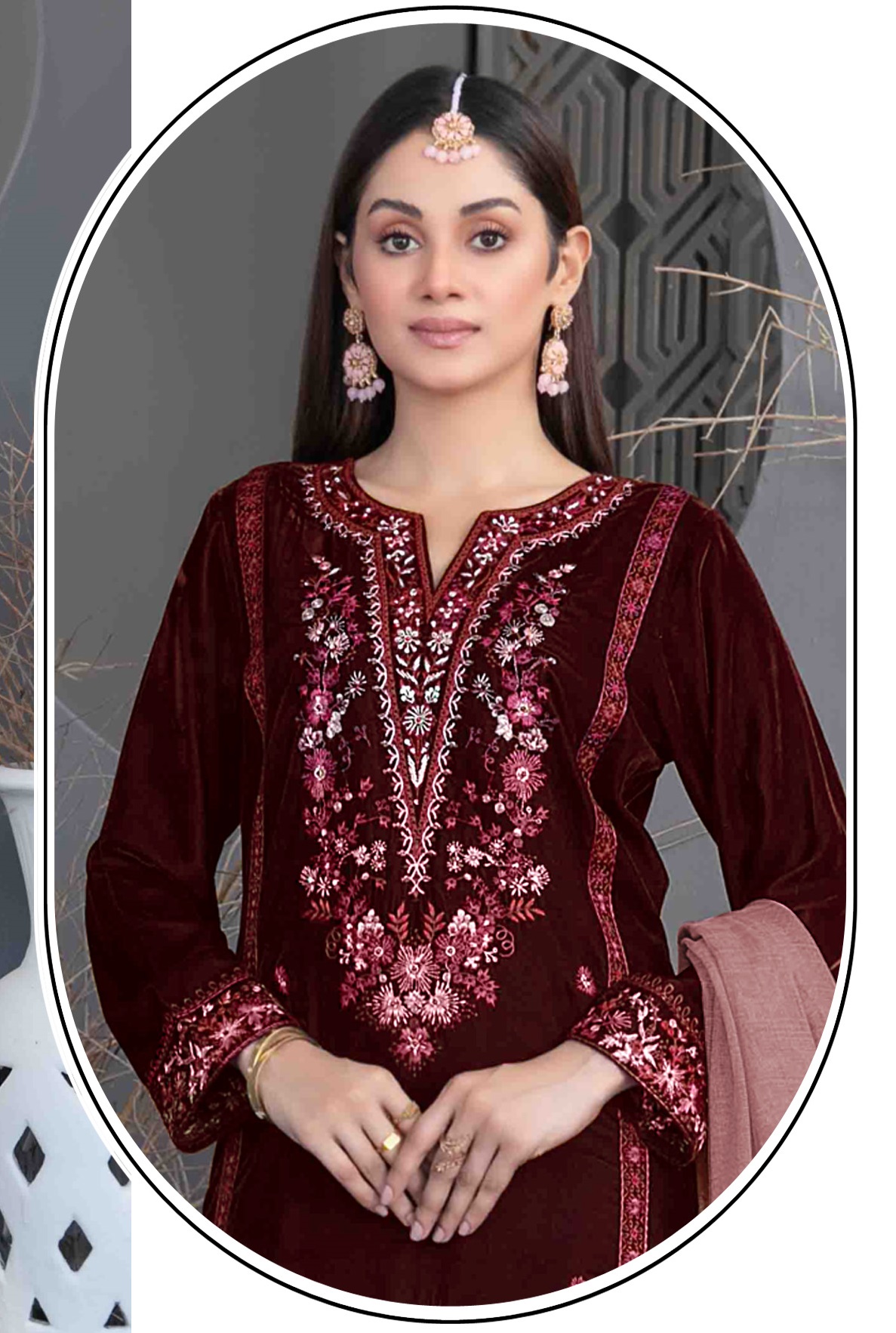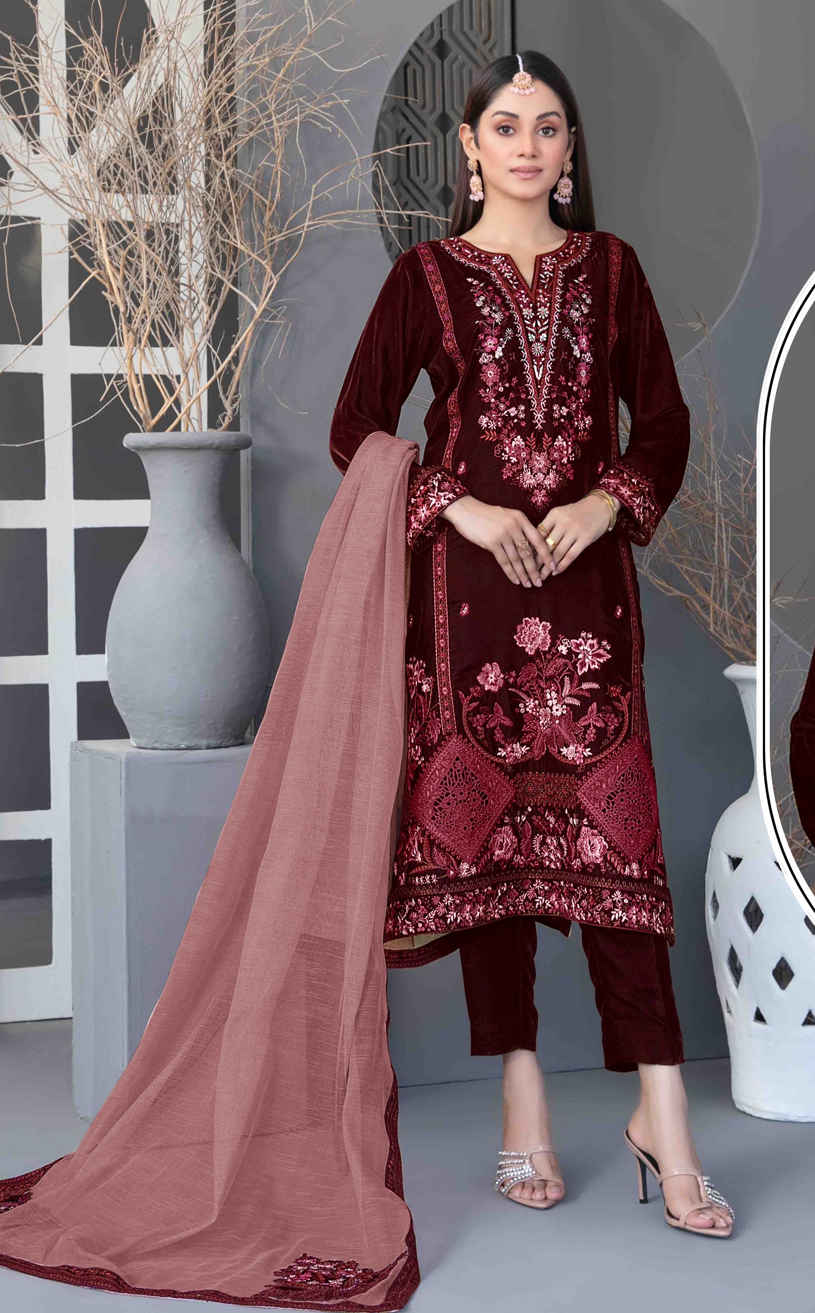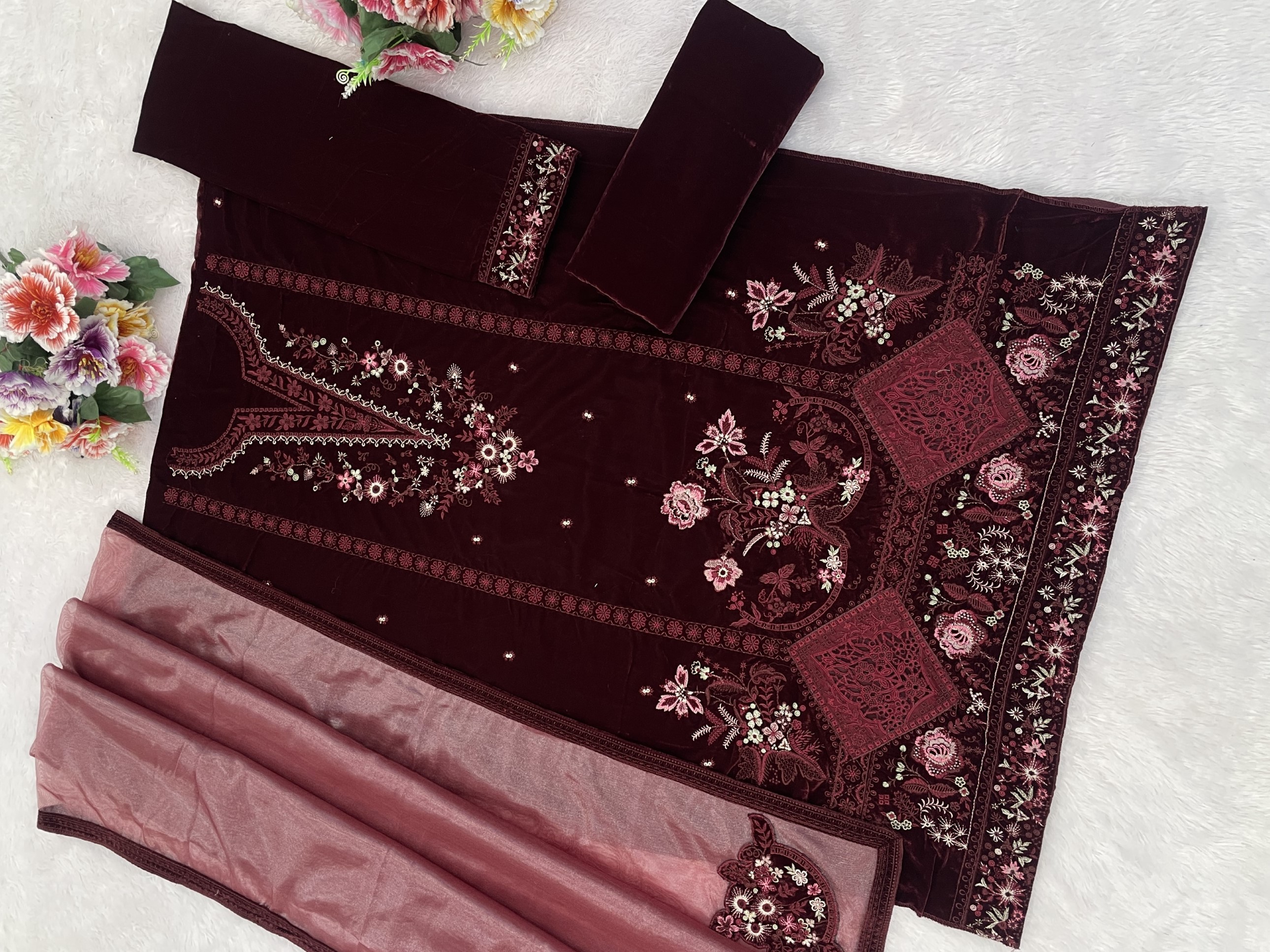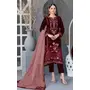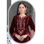 Maroon Velvet Semi Stitched Suit with Embroidery Sequence Work