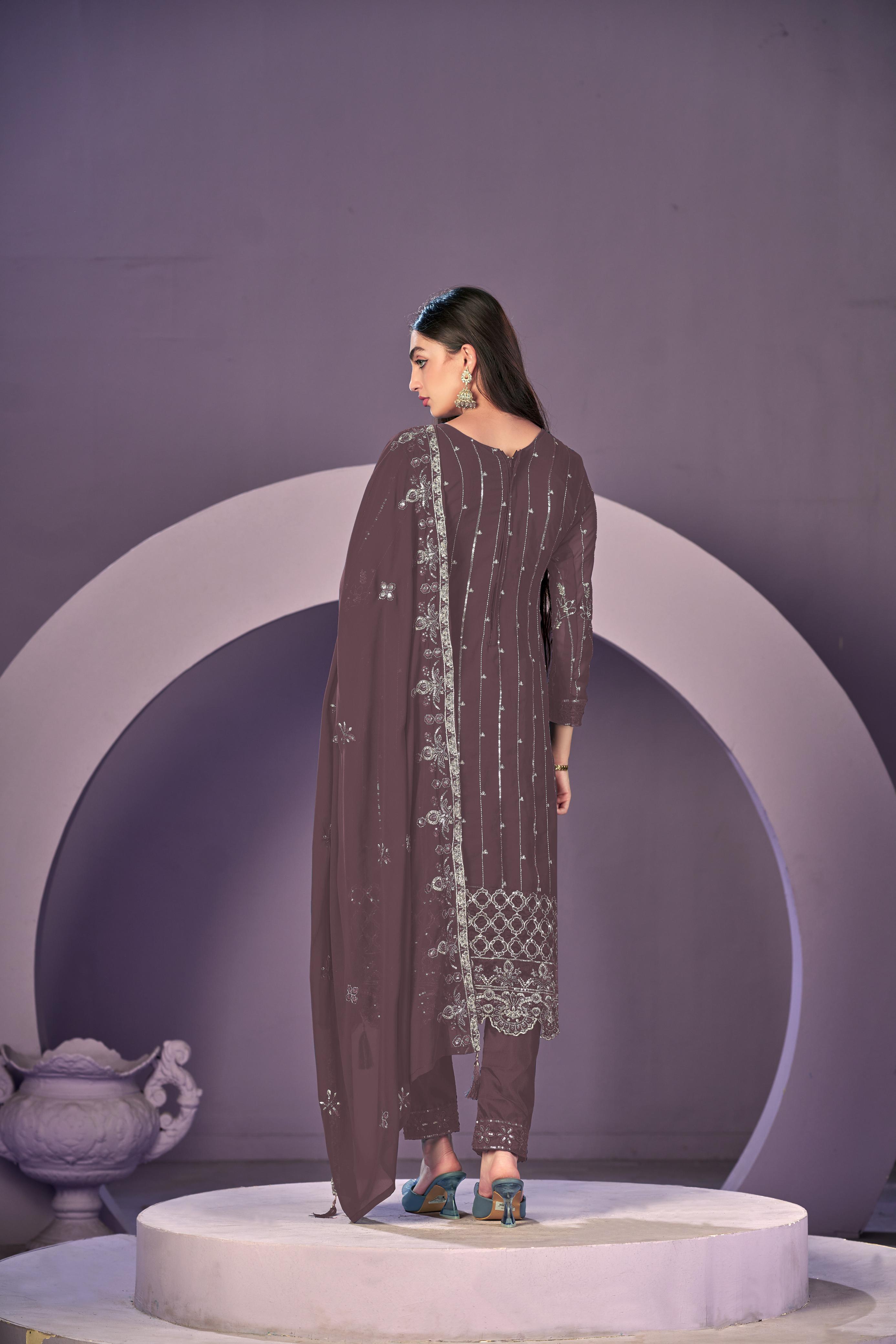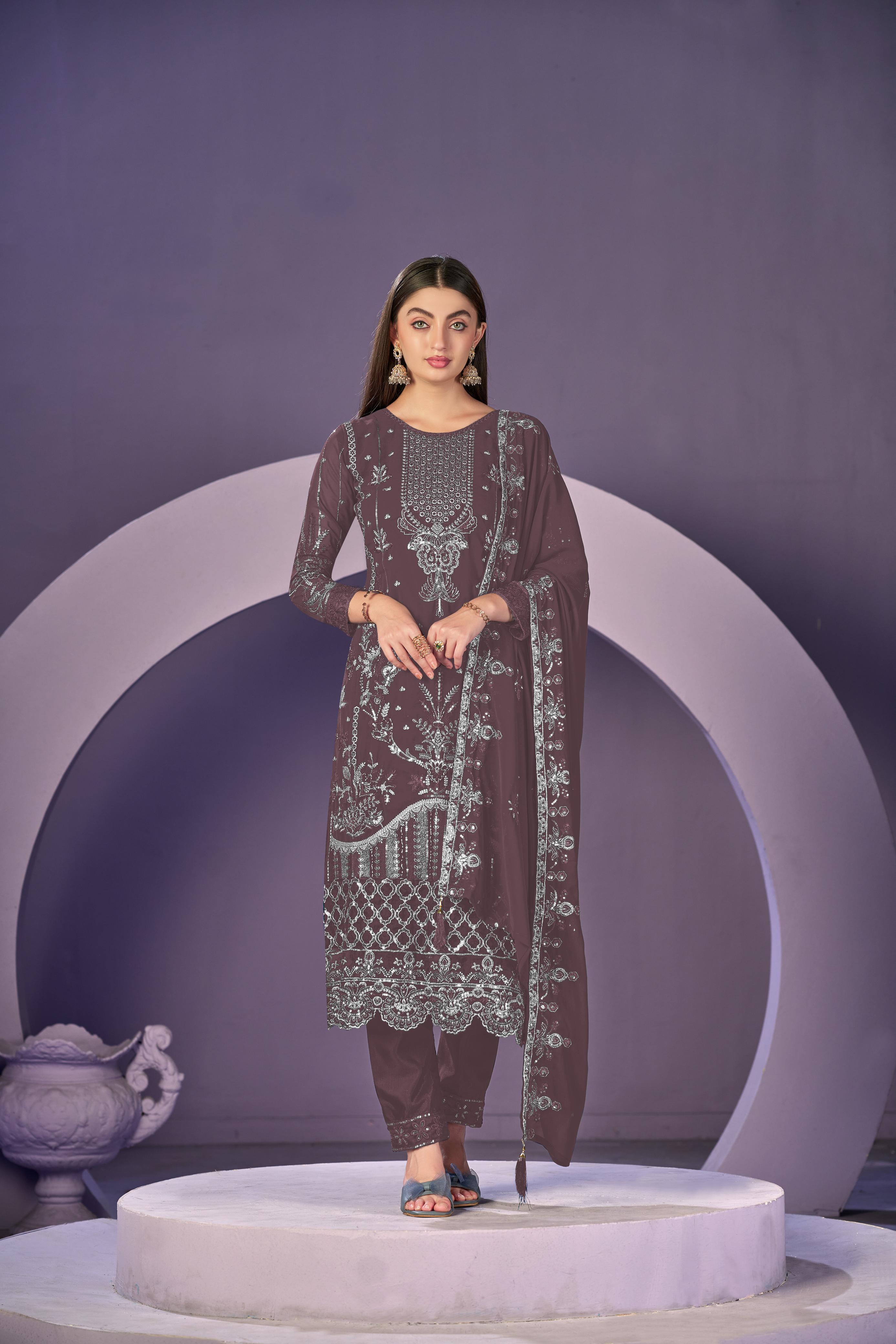 Mauve heavy georgette embroidered semi stitched suit with khatli work