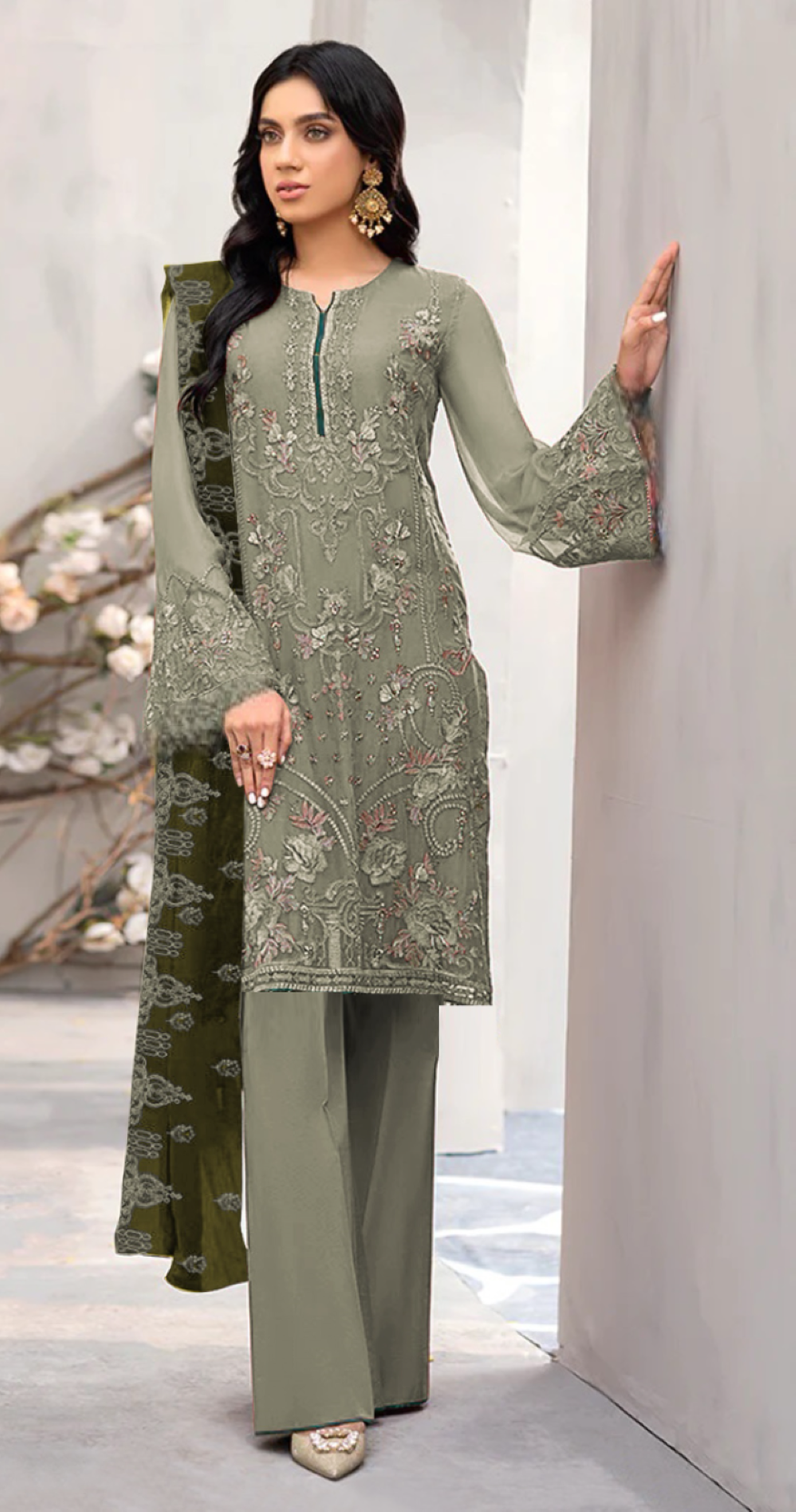 Mehendi Embroidered Faux Georgette Semi Stitched Salwar Suit