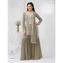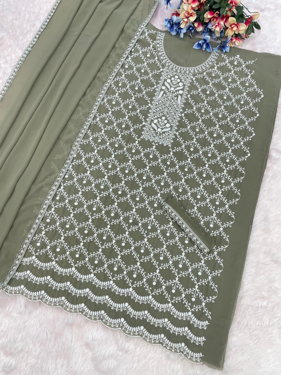 Mehendi Faux Georgette Semi Stitched Suit with Embroidery Cotton Thread & Sequence Work