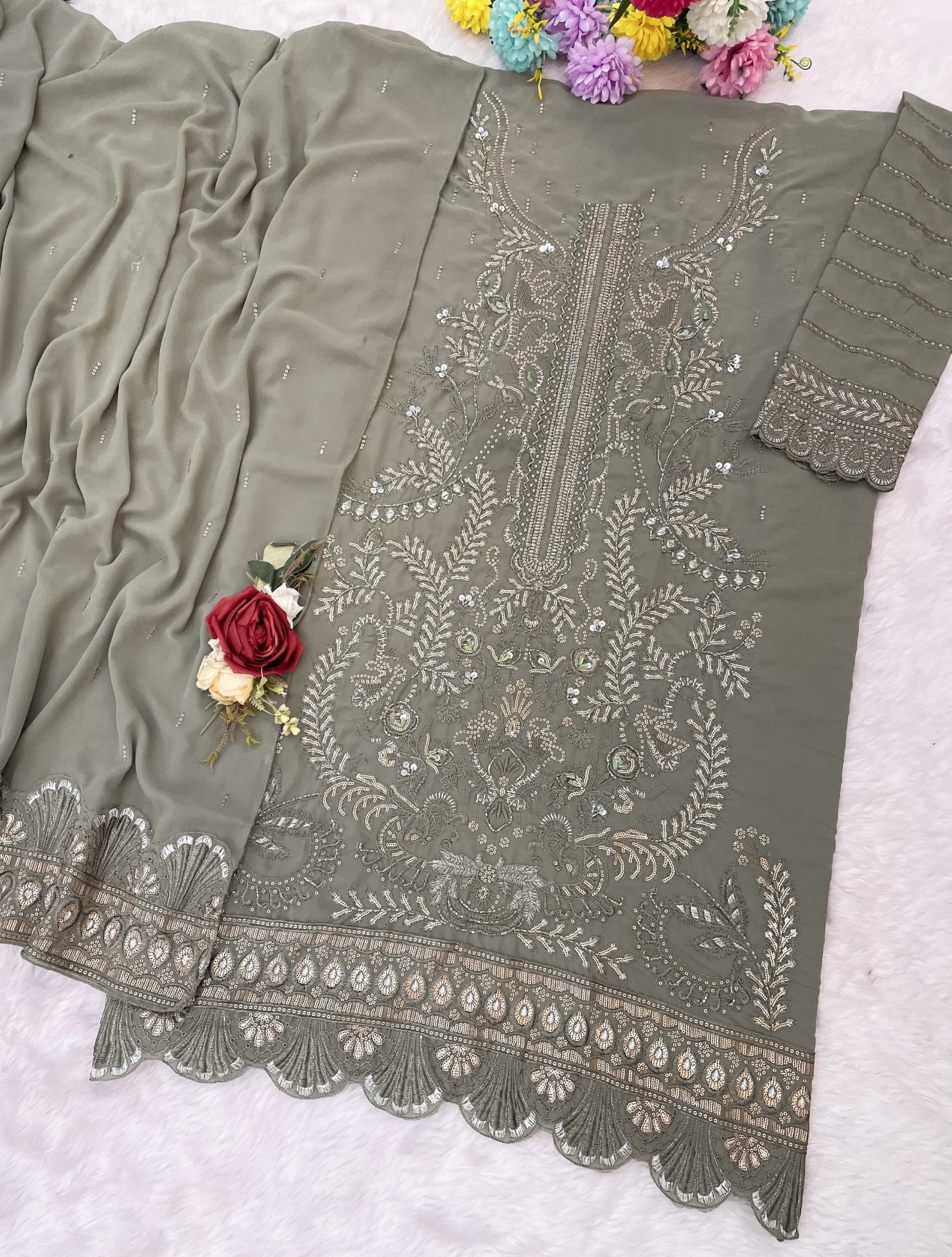 Mehendi Fox Georgette Semi Stiutched Suit with Embroidery Sequenc & Khatli Work