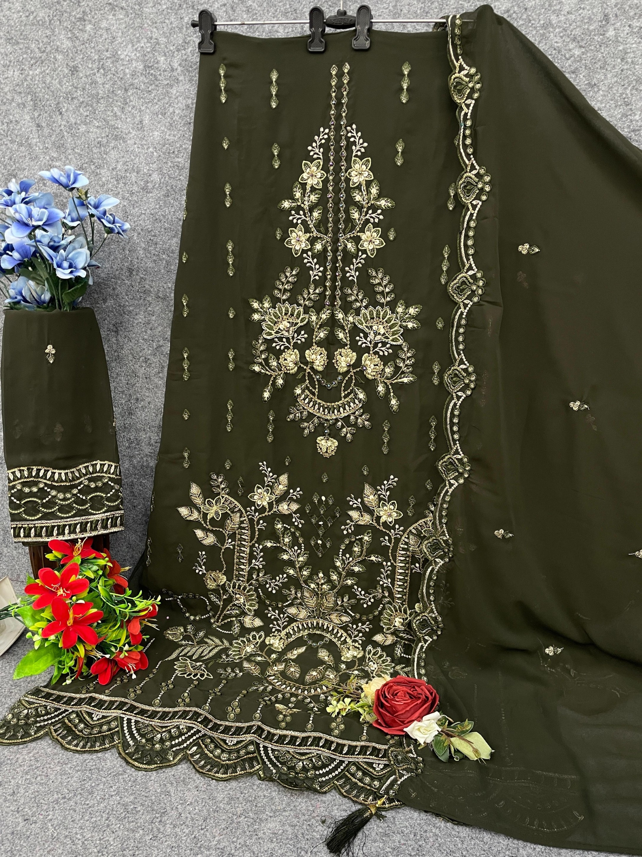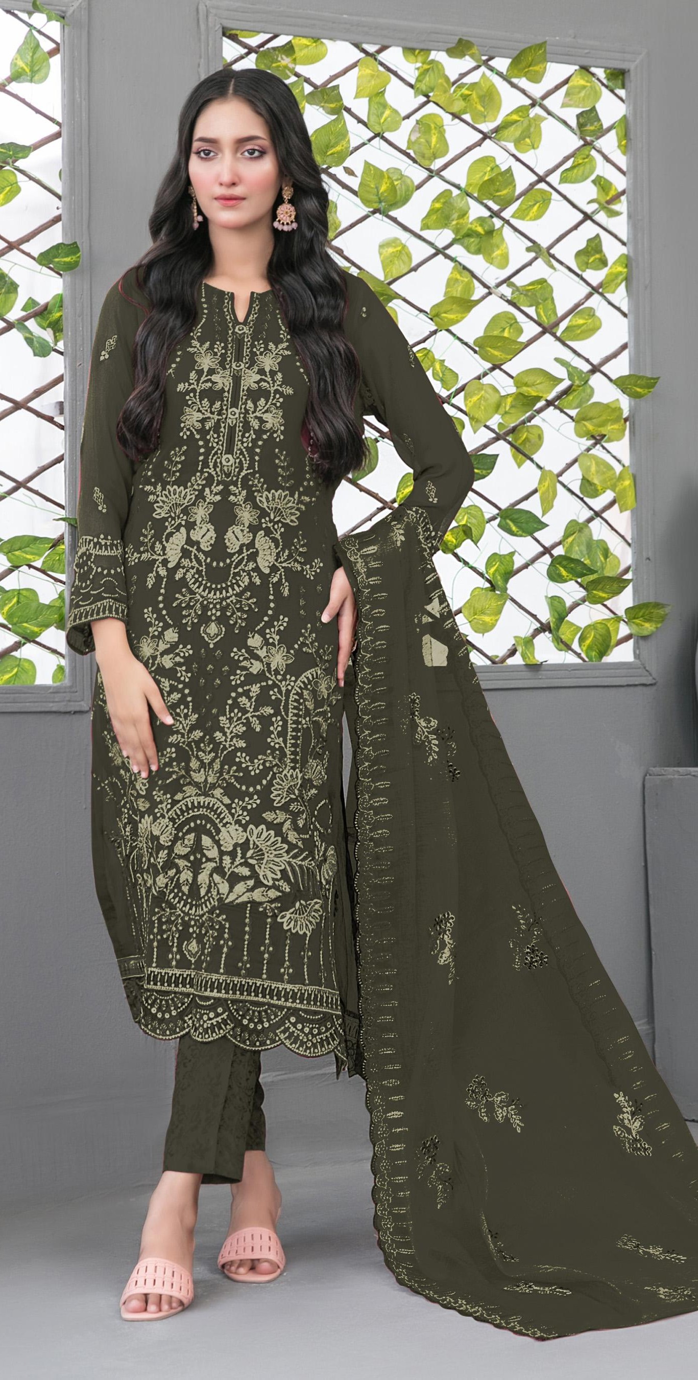 Mehendi Fox Georgette Semi Stiutched Suit with Embroidery Sequence Work