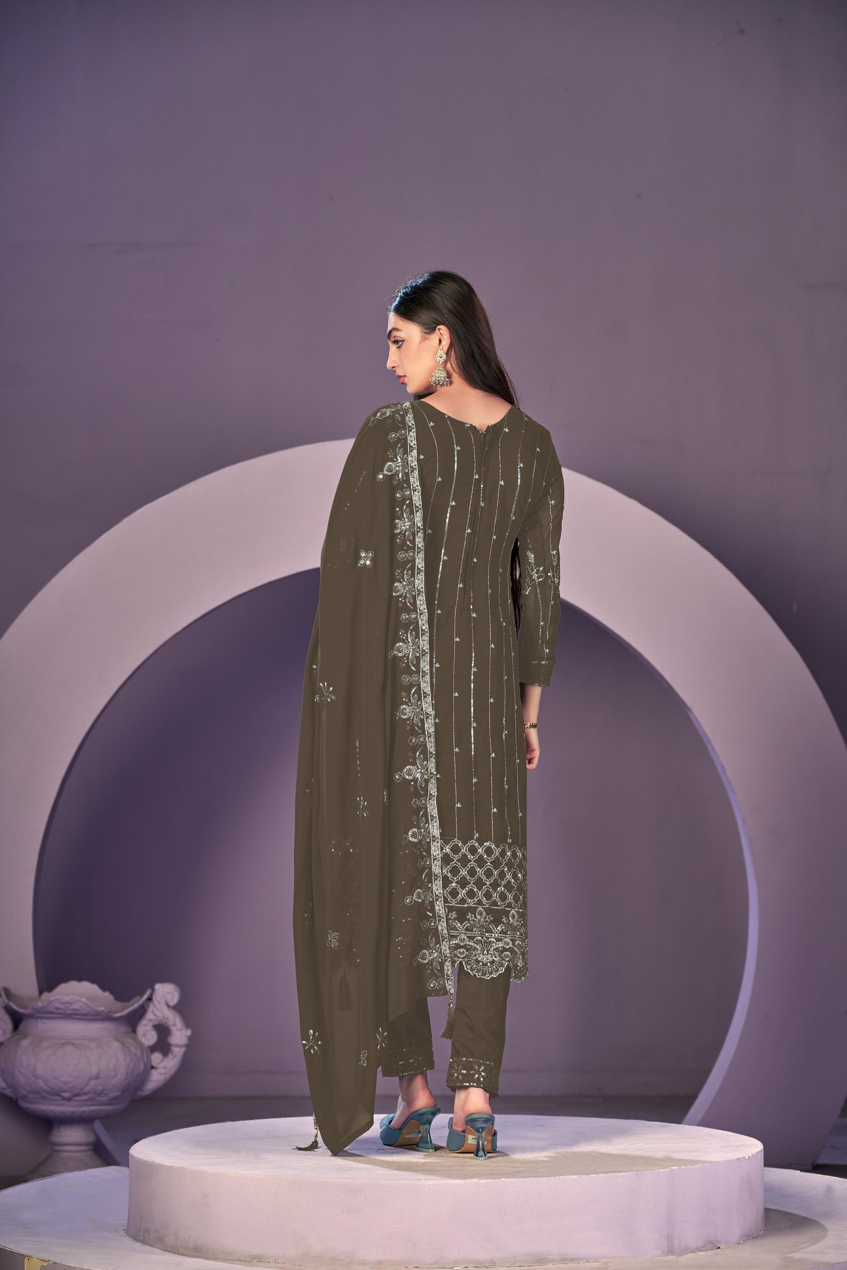 Mehendi heavy georgette embroidered semi stitched suit with khatli work