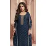 Navy Blue Dola Jecard Silk Sequence Embroidered Semi-Stitched Salwar Suit