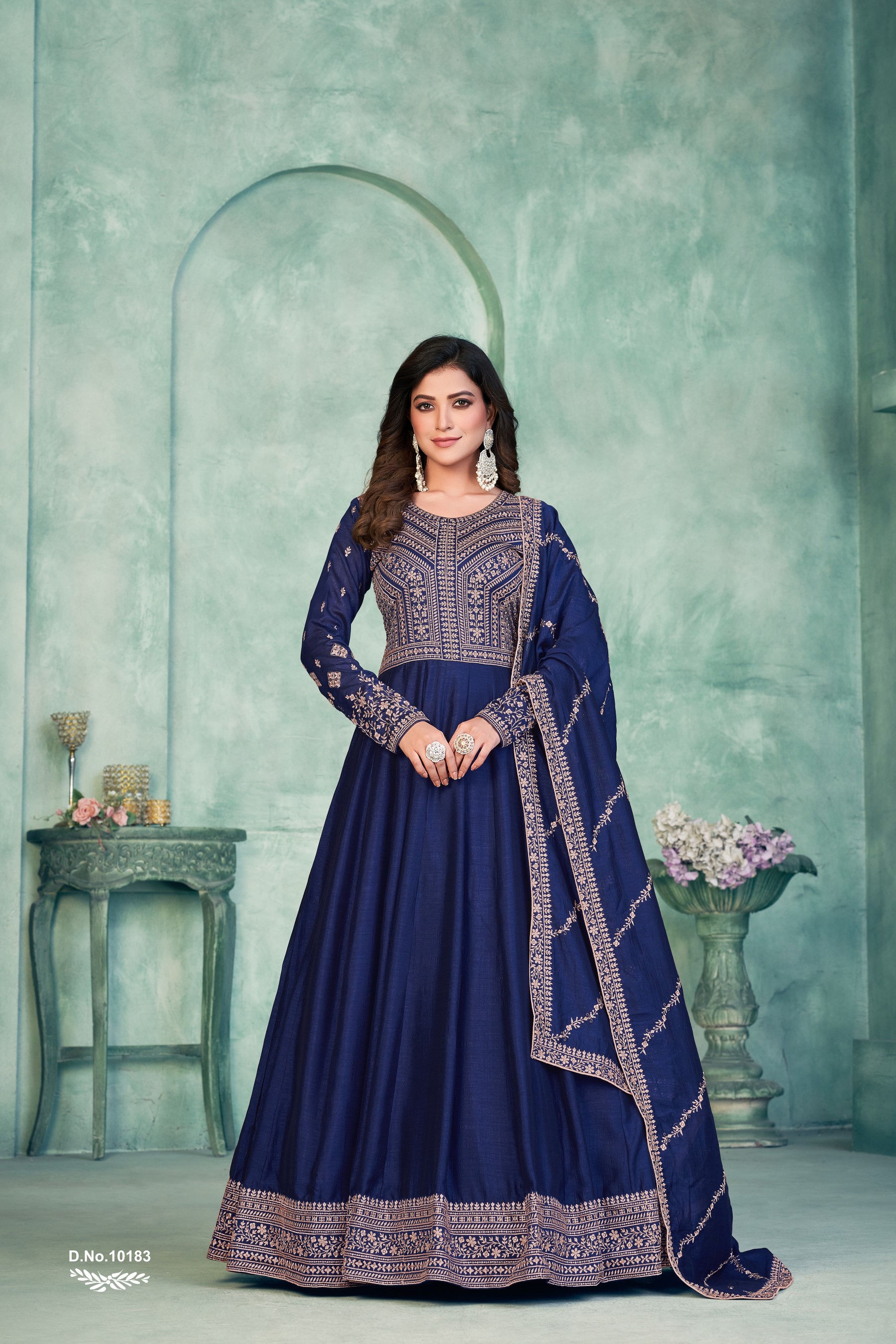 Navy Blue Embroidered Art Silk Semi Stitched Anarkali Suit
