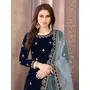 Navy Blue Embroidered Velvet Semi Stitched Patiyala Suit