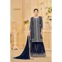 Navy Blue Faux Georgette Embroidered Stitched Salwar Suit (Free Size)