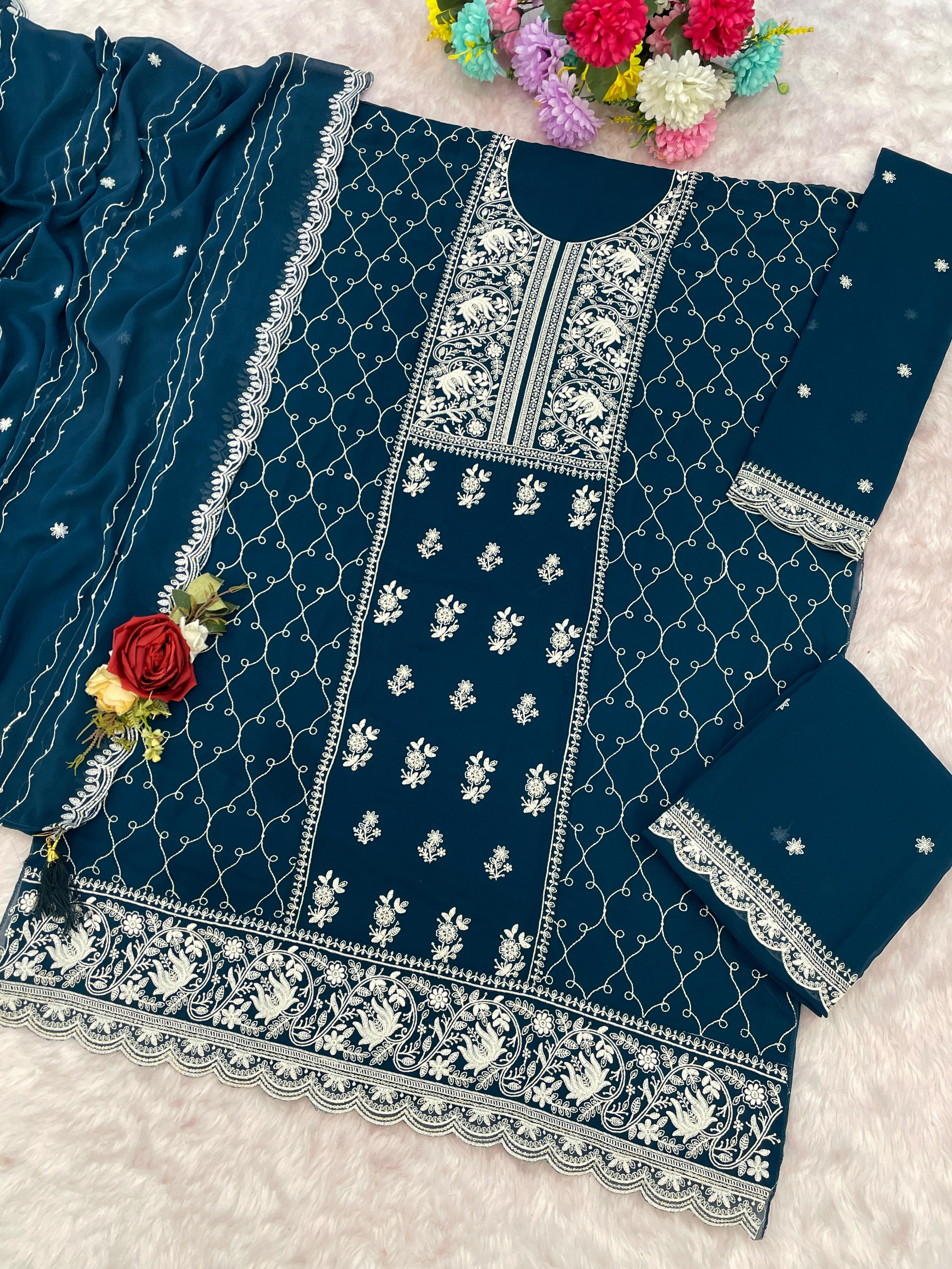 Navy Blue Faux Georgette Semi Stitched Suit with Embroidery Sequence Work