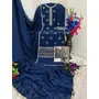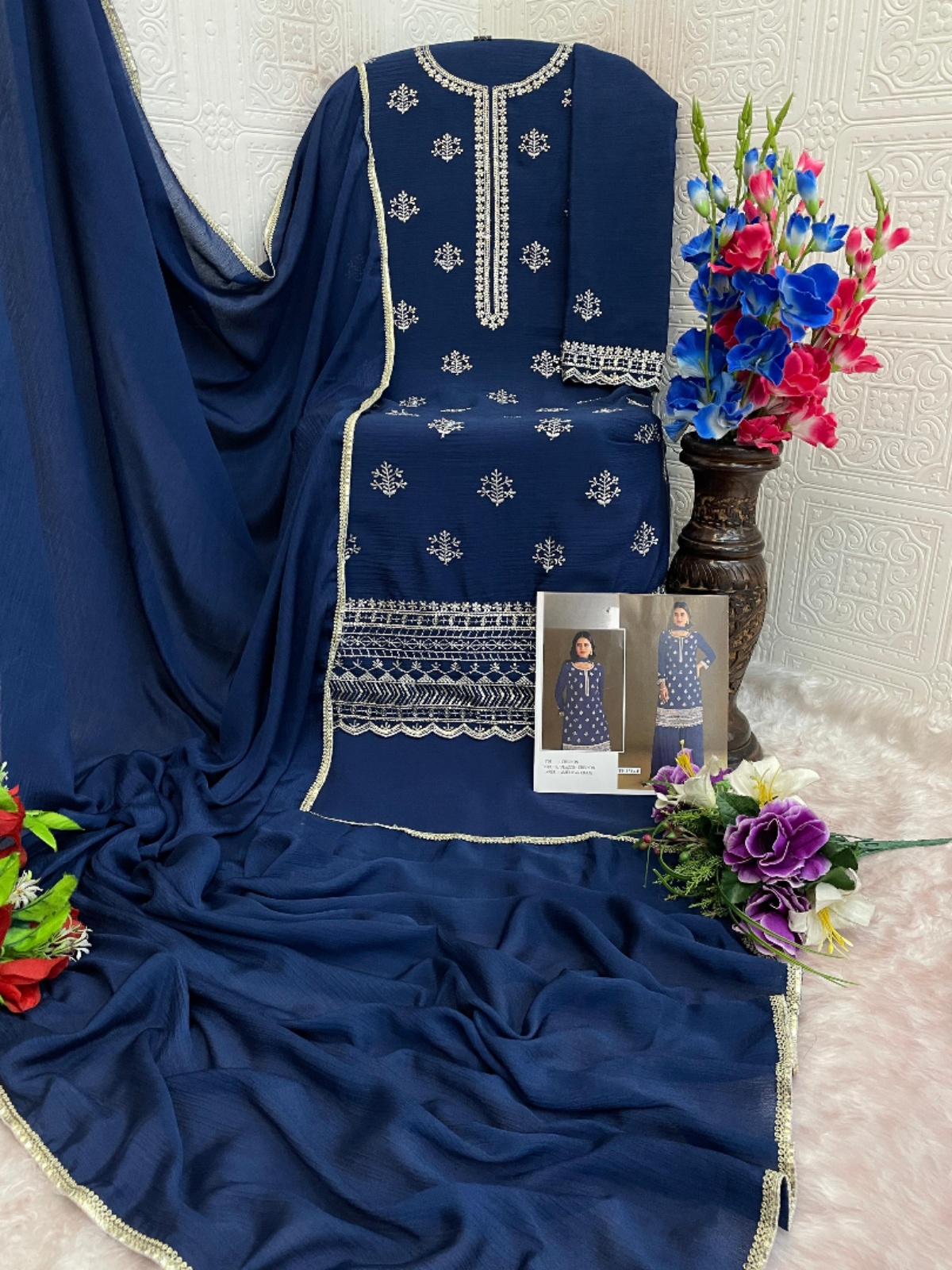 Navy Blue Heavy Chinon Semi Stitched Suit With Embroidery Bits Work