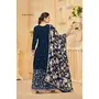 Navy Blue Roman Silk Embroidered Semi-Stitched Salwar Suit