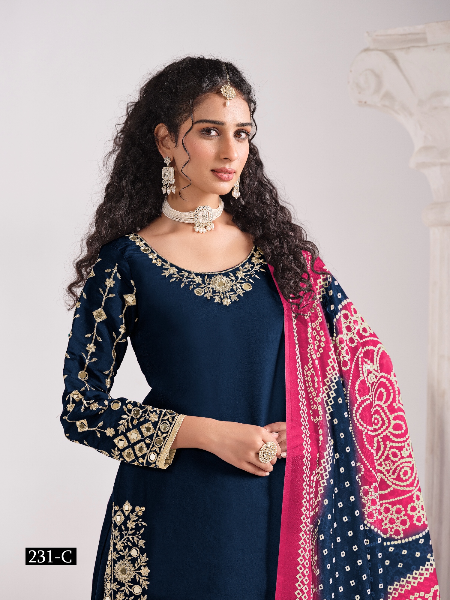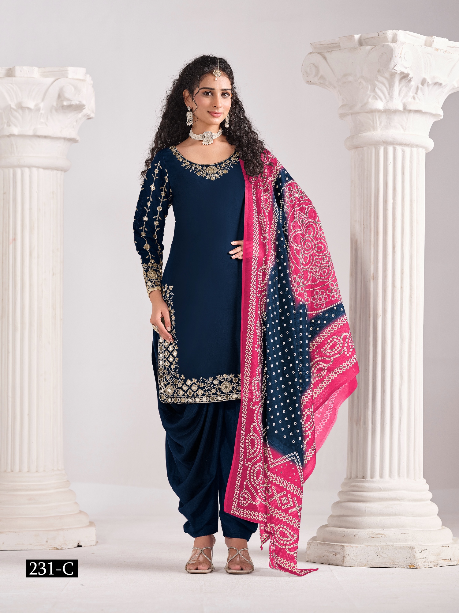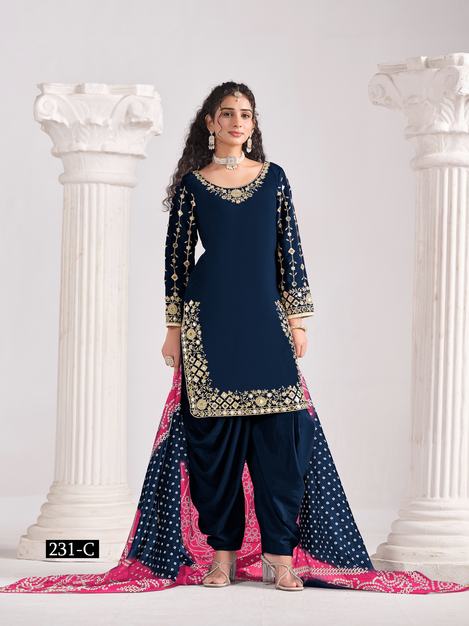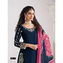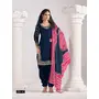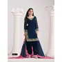 Navy Blue Roman Silk Semi Stitched Suit with Embroidery & Real Mirror Work