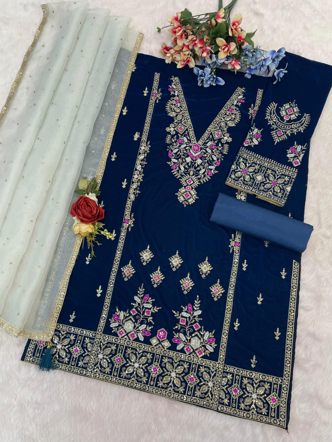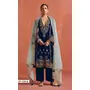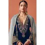 Navy Heavy Velvet Semi Stitched Suit With Embroidery Work