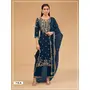Navy Vichitra Semi Stitched Suit with Embroidered & Multi Thread Zari Work