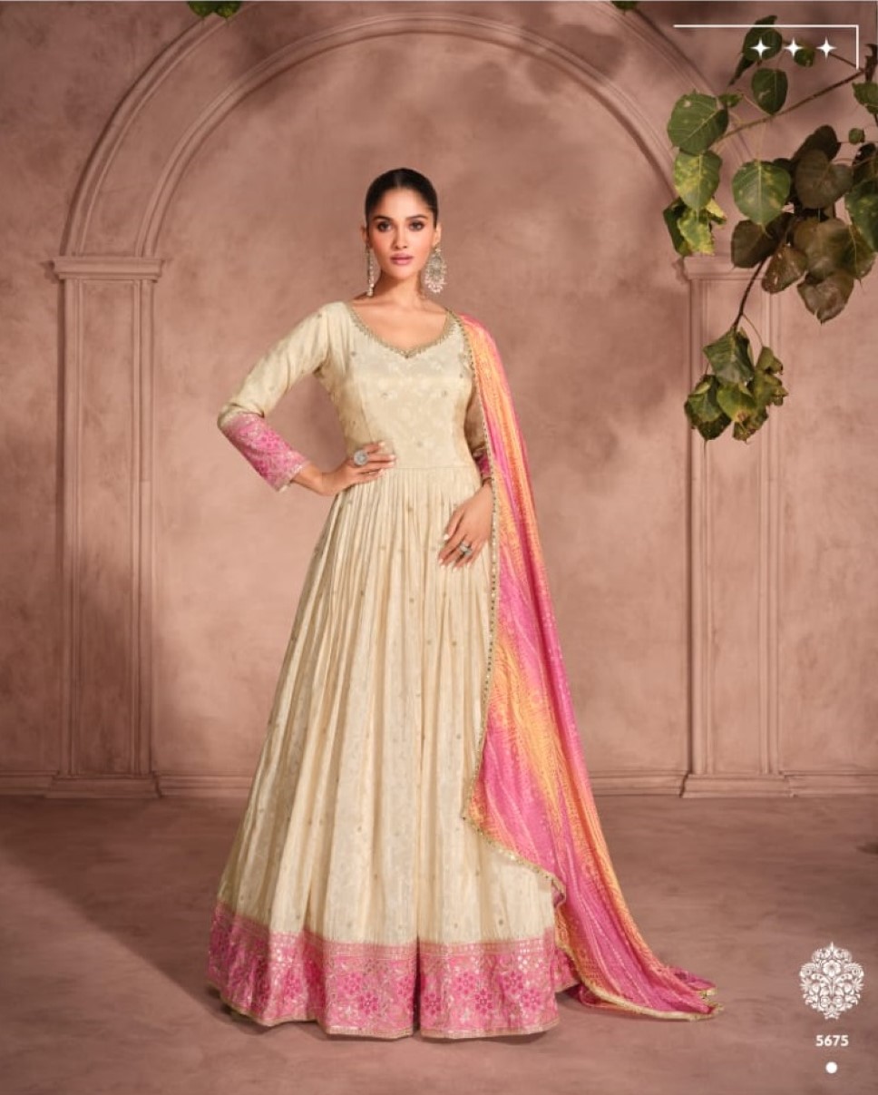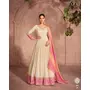 Off White & Pink Viscos Shimmer Embroidered Readymade Anarkali Suit (Free Size)