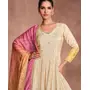 Off White & Yellow Viscos Shimmer Embroidered Readymade Anarkali Suit (Free Size)