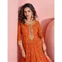 Orange embroderied silk anarkali suit- full stitched free size