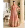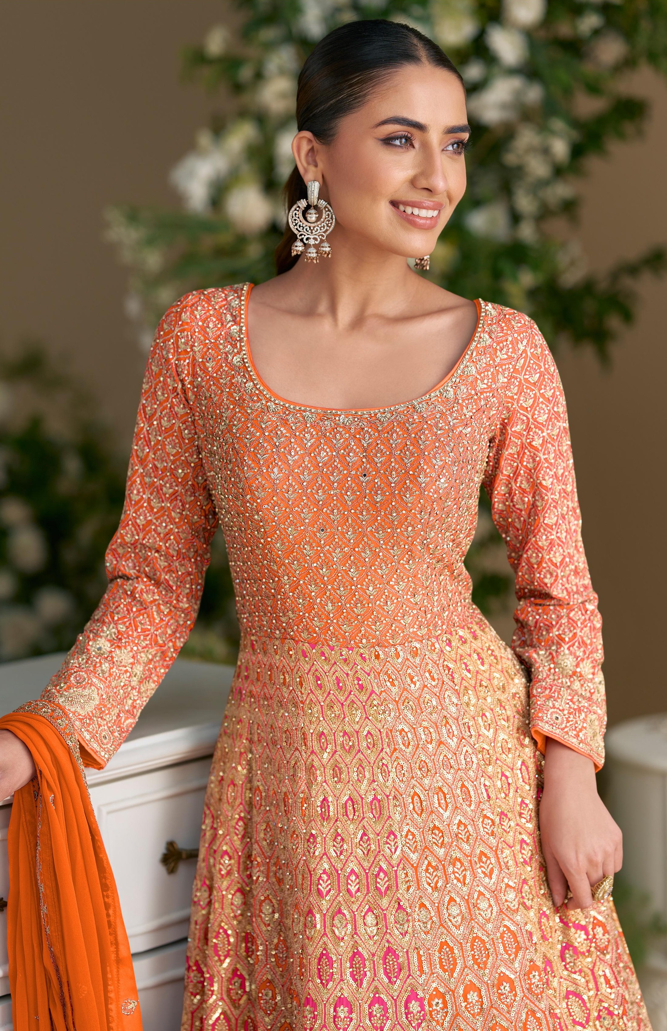 Orange Georgette Readymade Anarkali Suit with Embroidery Zarkan Work (Free Size)
