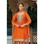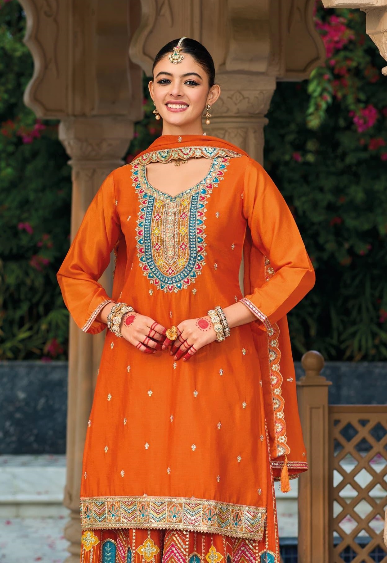 Orange Premium Embroidered Chinon Readymade Salwar Suit (Free Size)
