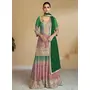Peach Digital print with Embroderied Silk Stitched Plazo Suit(Free Size)