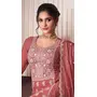 Peach Embroderied Work Silk Semi-Stitched Sharara Suit